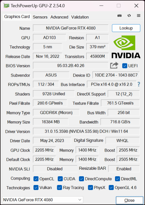 顯卡:NVIDIA GeForce RTX 4080 16GB