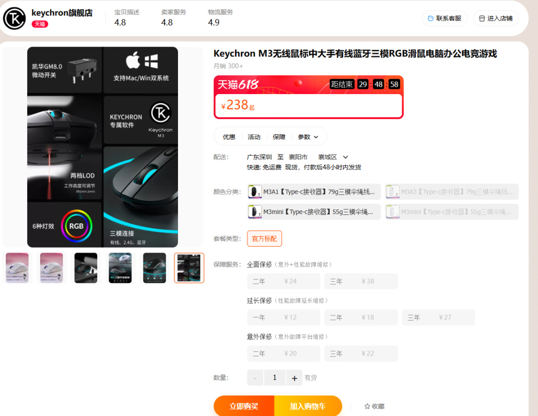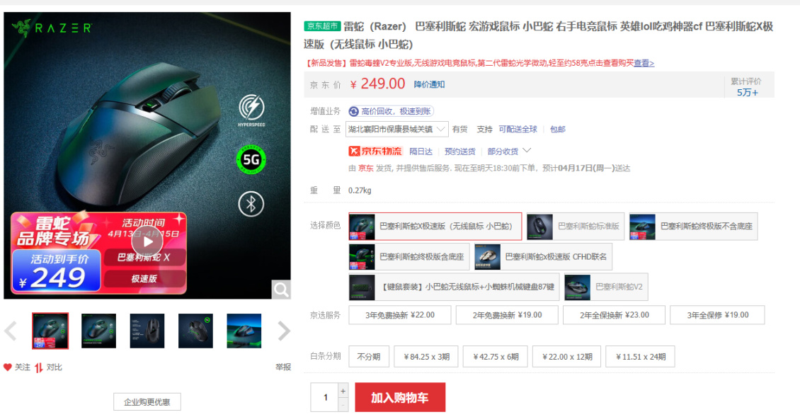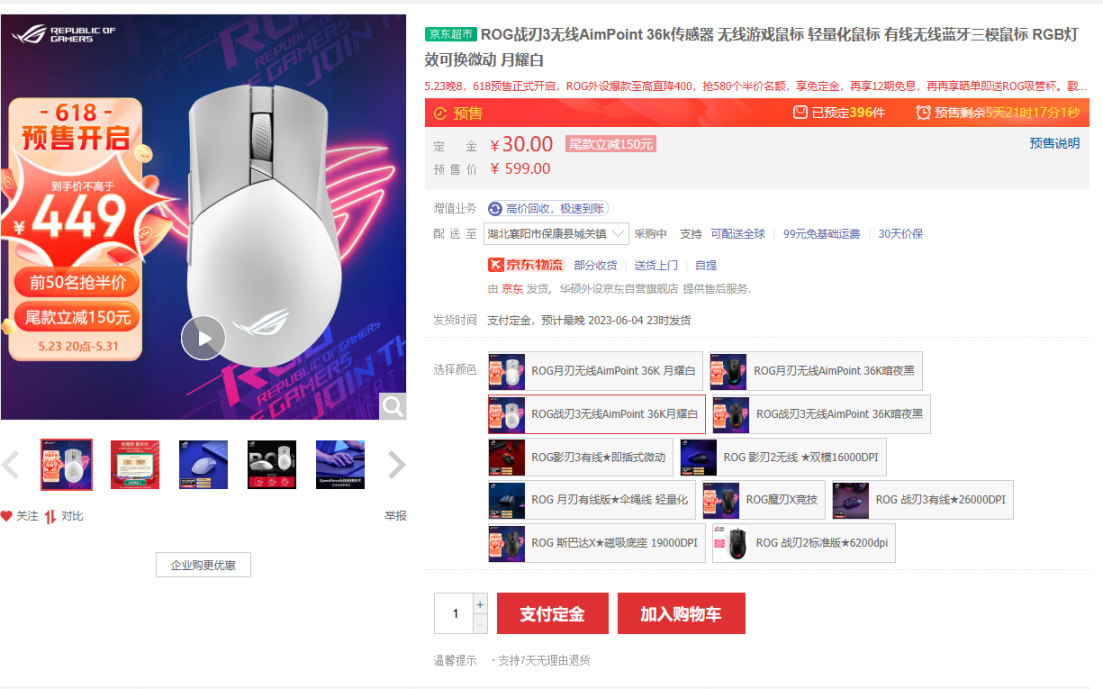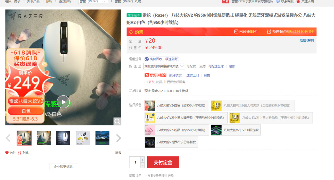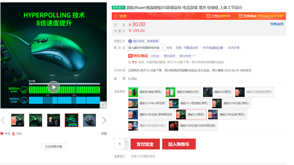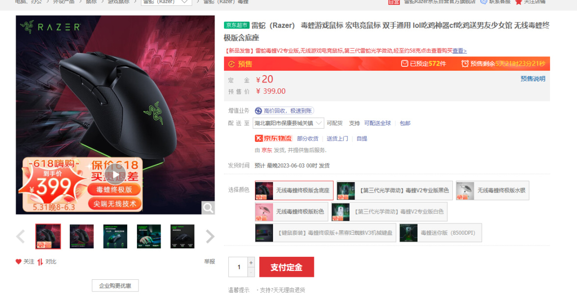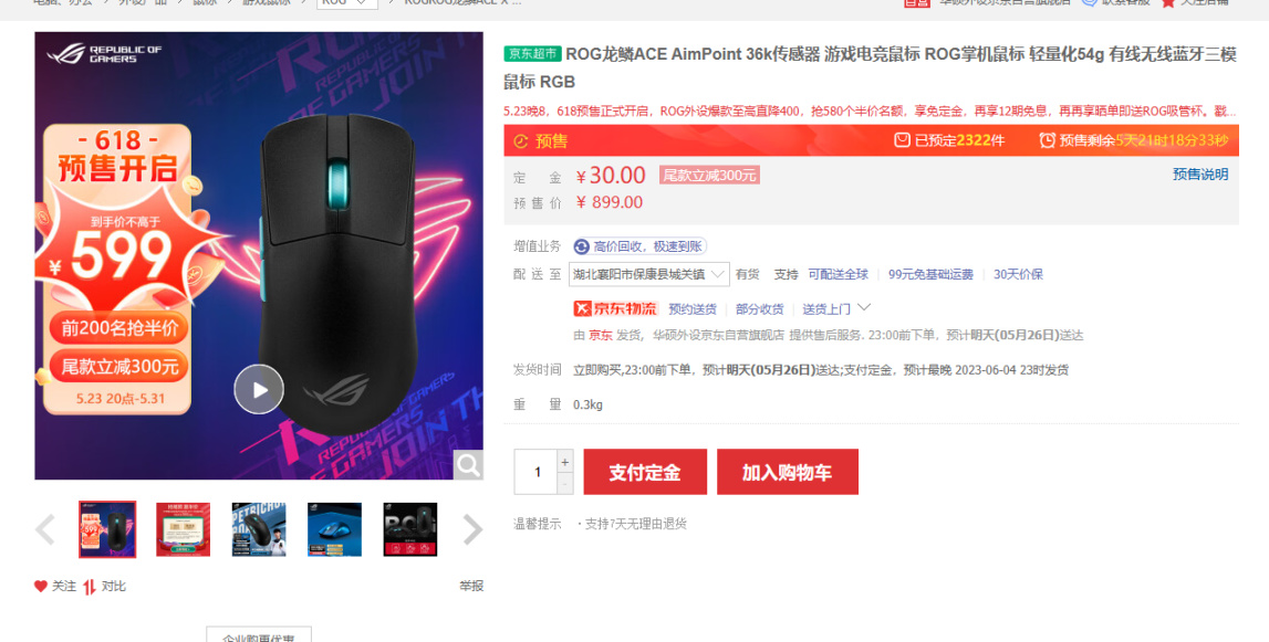 618打折對標雷蛇的旗艦是直接幹到了599 未來購物節可能也是這個價位了