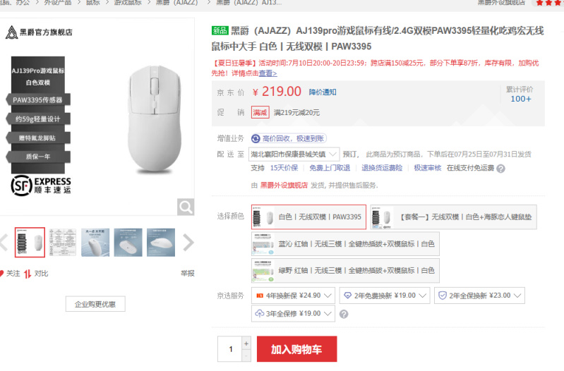 購物節均價199塊 平常價格是259塊,經常斷貨的一個鼠標