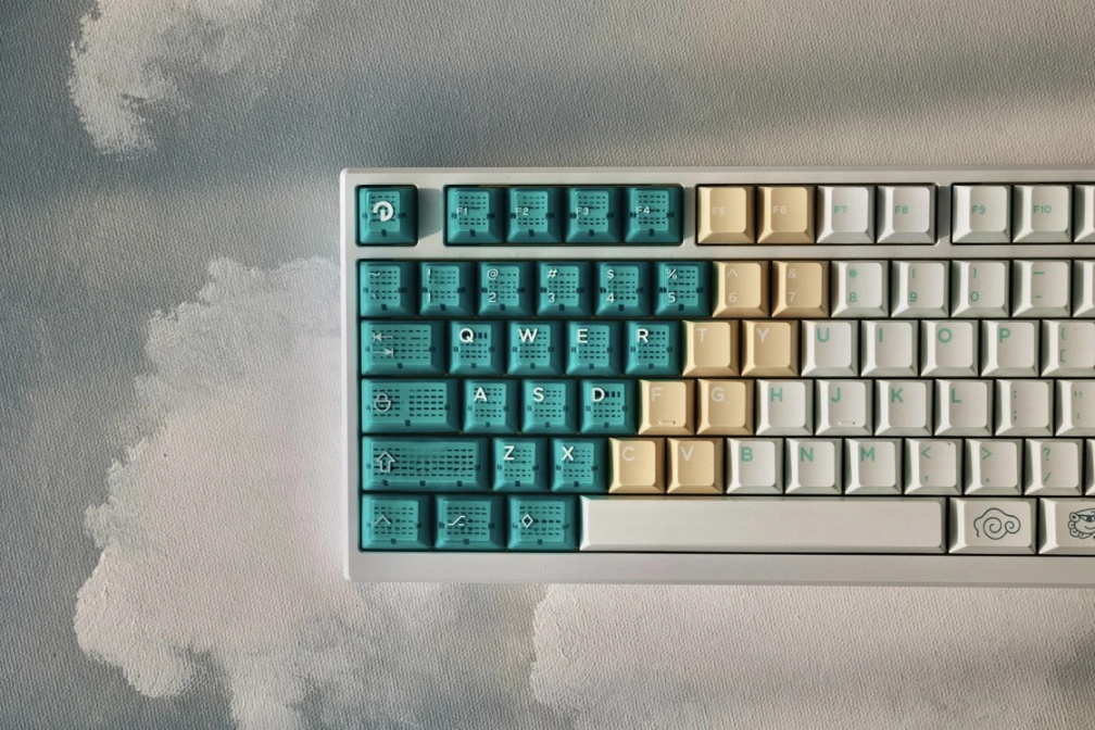 二次成型工藝搭配小模具,先做字符部分成型後再拿去做外層包膠,分兩次手工進行,優點是小模具允許更豐富多樣的客製化設計,缺點是手工出貨慢成本高。具體可以參考純二次成型廠家的各種橫向豎向漸變(gmk雪怪、dmk鹽湖、寂靜海洋、kkb藝術人生)或者單獨挑出來幾顆做不同顏色(手作、色板),這些是雙色注塑大模具難以做到的,如果要做就會產生非常高的浪費率。