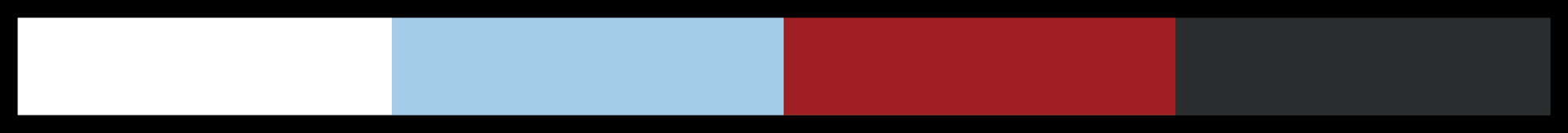 天藍色、白色、深灰色、深紅色,藍白色的組合與角色的特徵色一致。