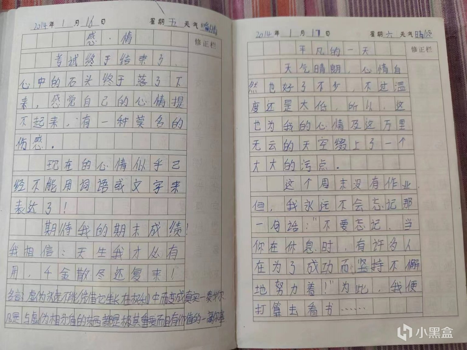 日記本一天天地記錄着我在學校和小飯桌的日常,語文老師即使一頭捲毛還是一臉兇相;數學老師長髮飄飄,她的低聲細語還是那麼溫柔;英語老師的短髮和來去匆匆的腳步,總是讓我覺得十分繁忙。我覺得班裏的女孩子都很漂亮,而那幾個學習很好的和很差的男生都很裝。