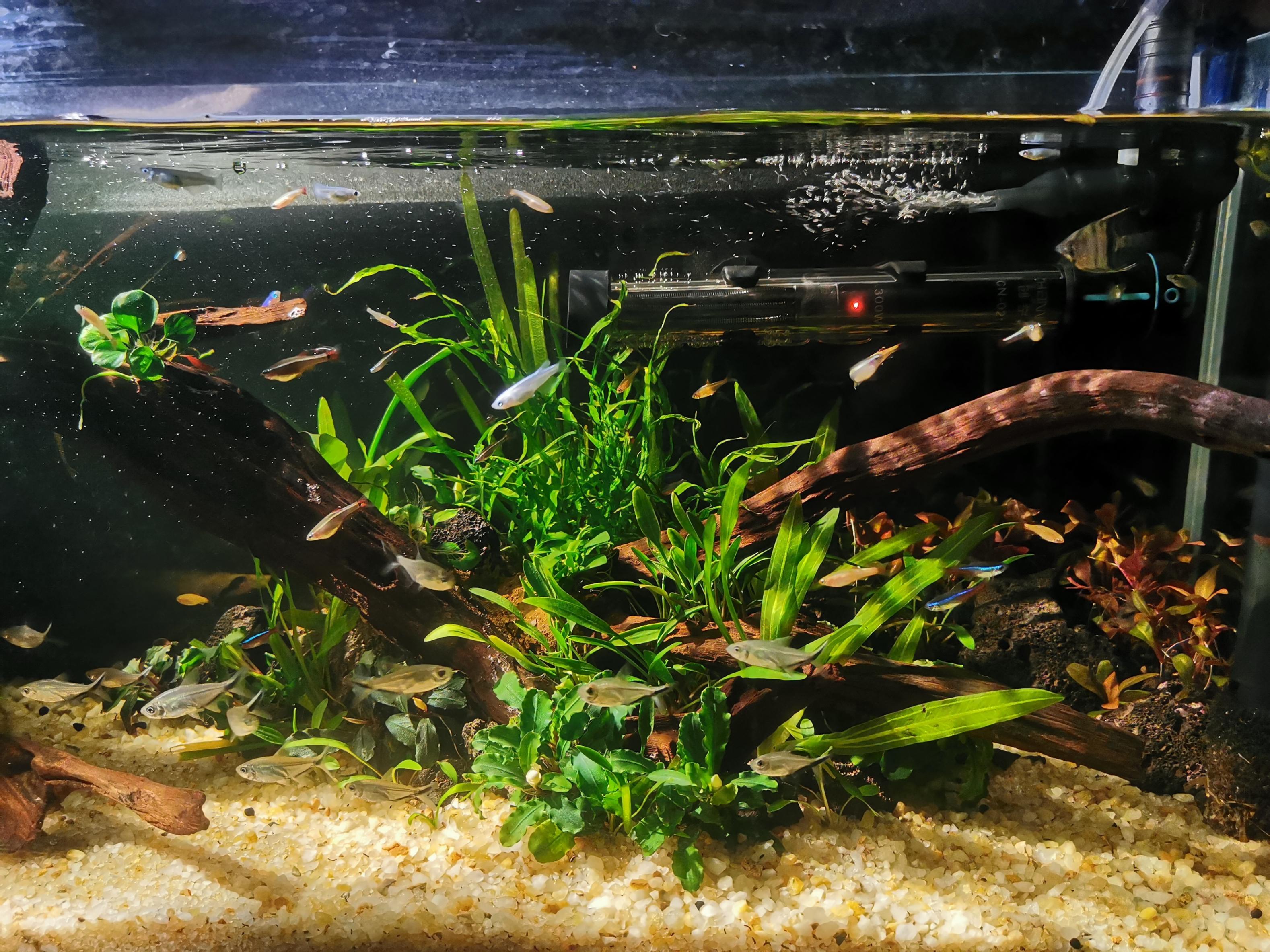 - 說是換過濾的時候把沉木碰倒了,然後水草沒有固定導致亂飄。