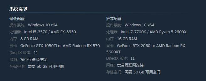 显卡: GeForce GTX 1050Ti or AMD Radeon RX 570