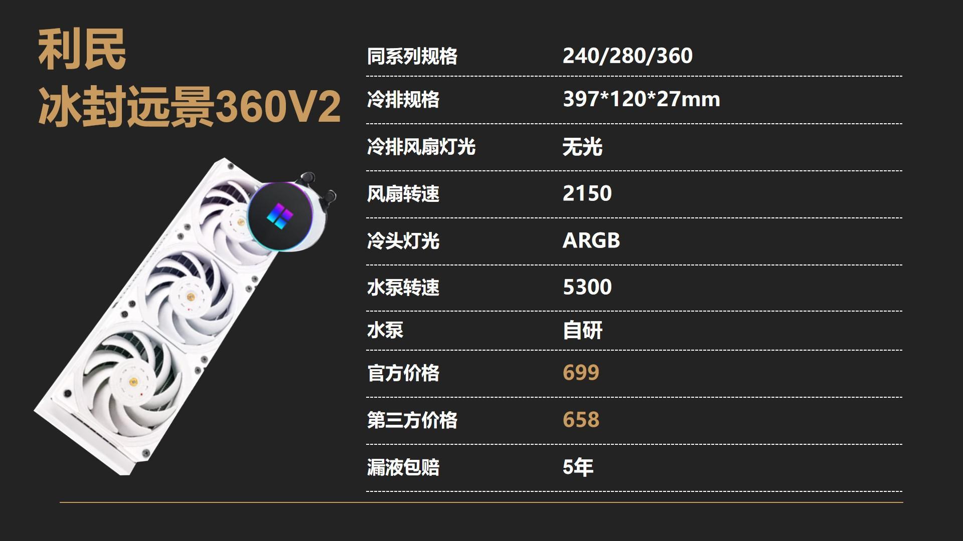 利民推薦冰封遠景V2系列,噪音控制出色,可惜沒有ARGB燈光,並且只有白色。