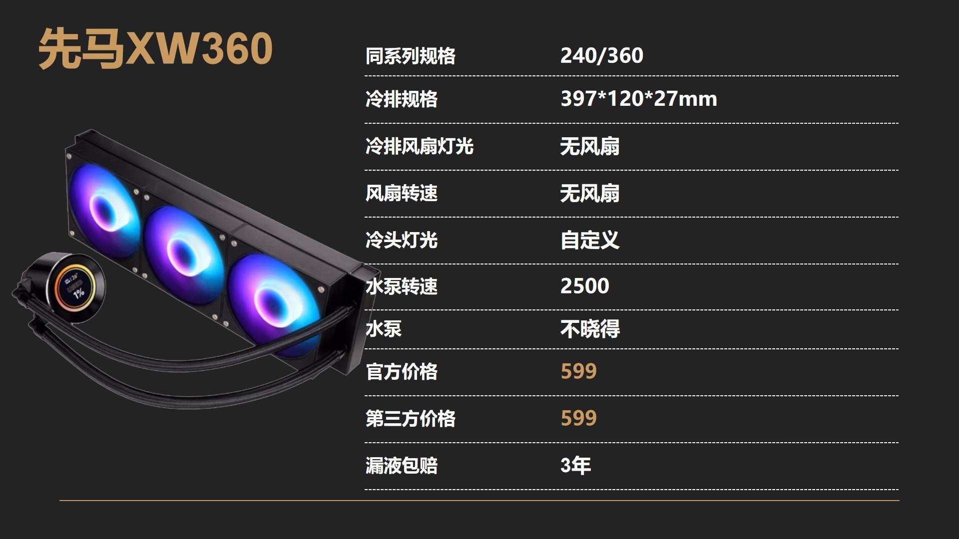 先馬XW360,有無風扇版本,性能同樣不錯。冷頭支持自定義。