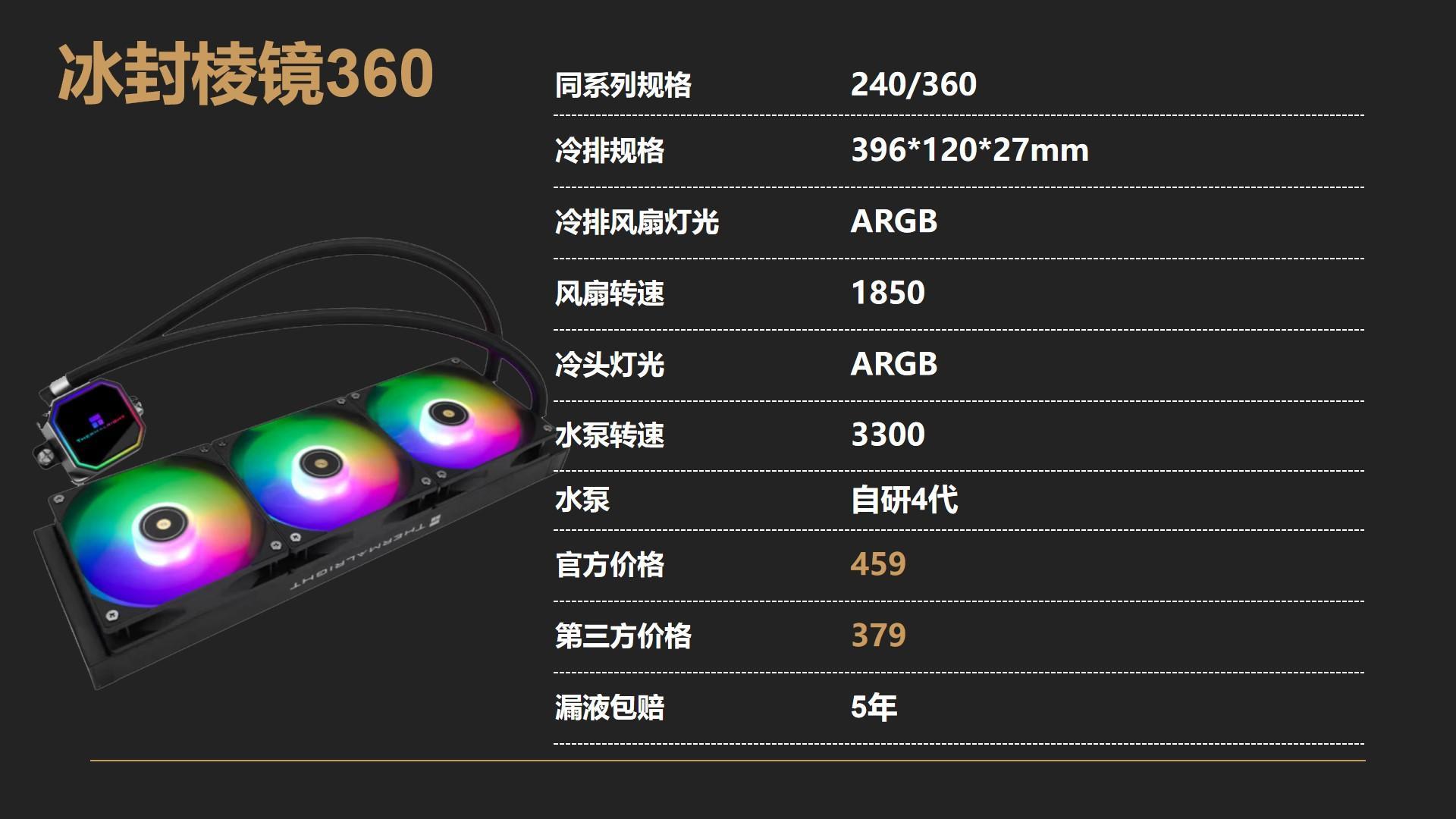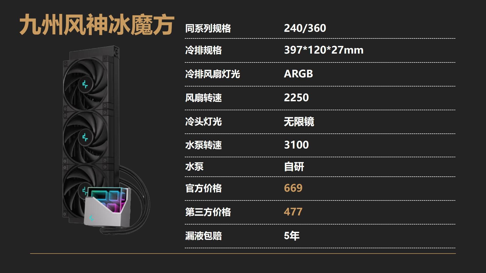 九州風神冰魔方,無限鏡冷頭辨識度很高,自研水泵,並且有5年漏液包賠。