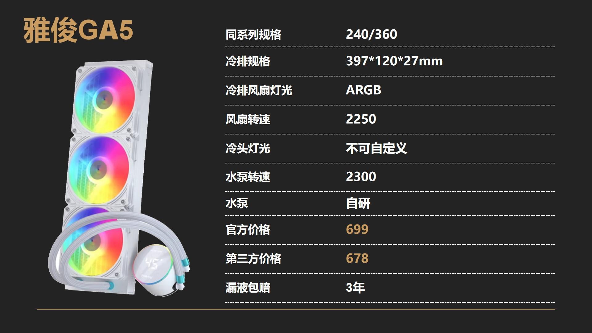 雅俊的GA5,性能第一梯隊,安裝方便,冷頭不支持自定義。