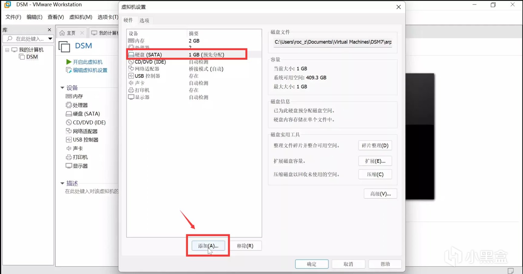 ▼添加一塊硬盤用來做數據存儲與系統盤,點擊添加按鈕;