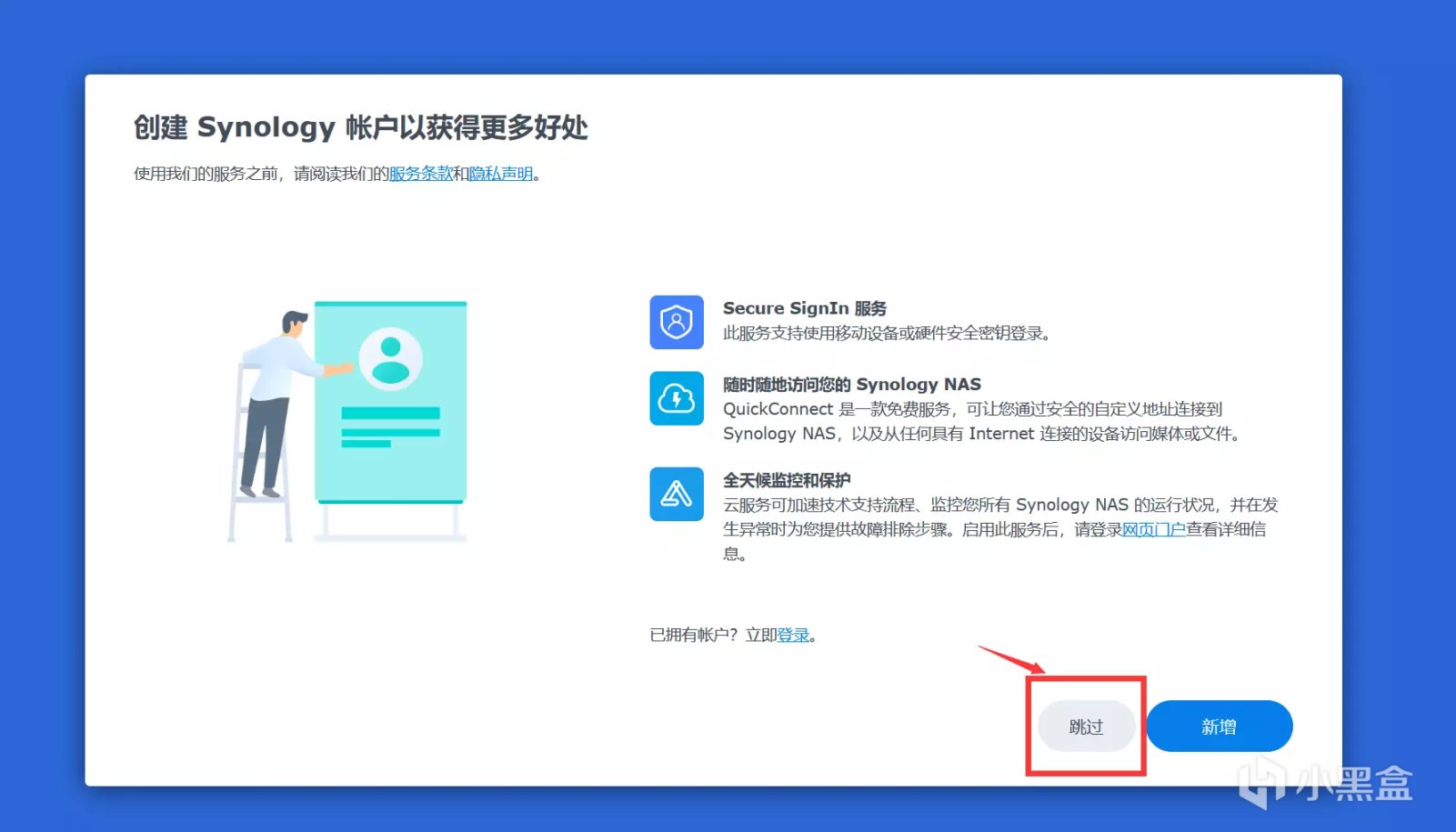 初見DSM▼系統安裝完成之後瀏覽器頁面會刷新,歡迎使用DSM。