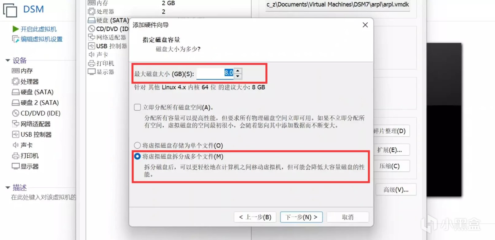 ▼自行設置給到黑羣暉的磁盤大小,講道理現在NVMe固態硬盤降價降得這麼厲害,400多就能買到2T了,所以給1個T沒毛病吧。