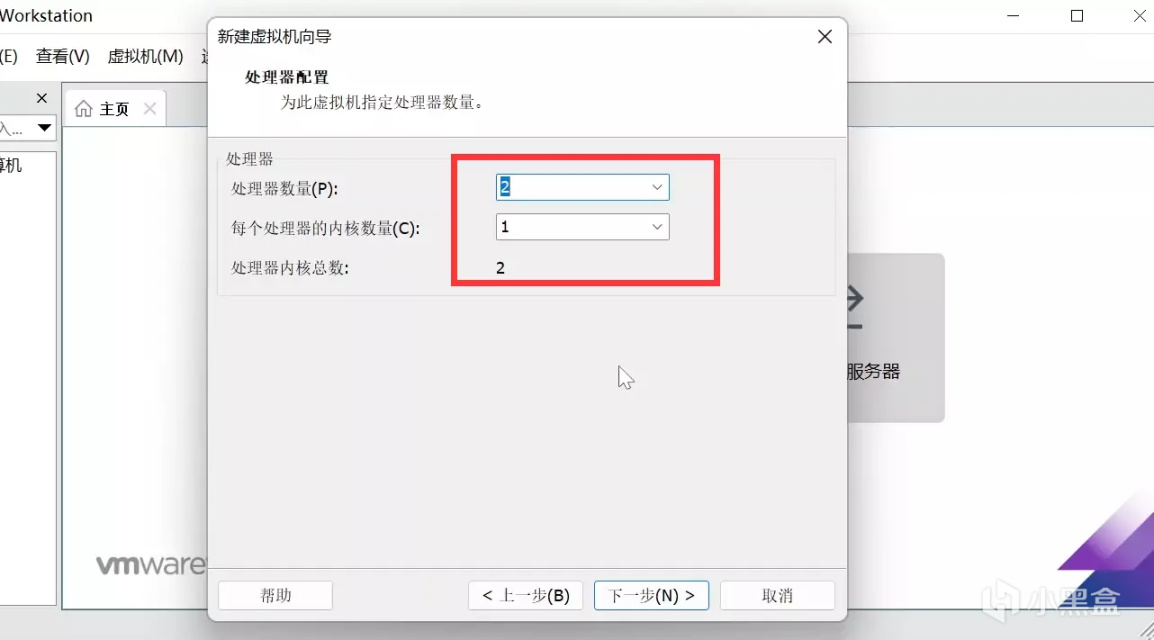 ▼給黑羣暉虛擬機配置處理器參數,N305是8C8T,不過對於黑羣暉來說按照個人使用經驗給2核就夠了。