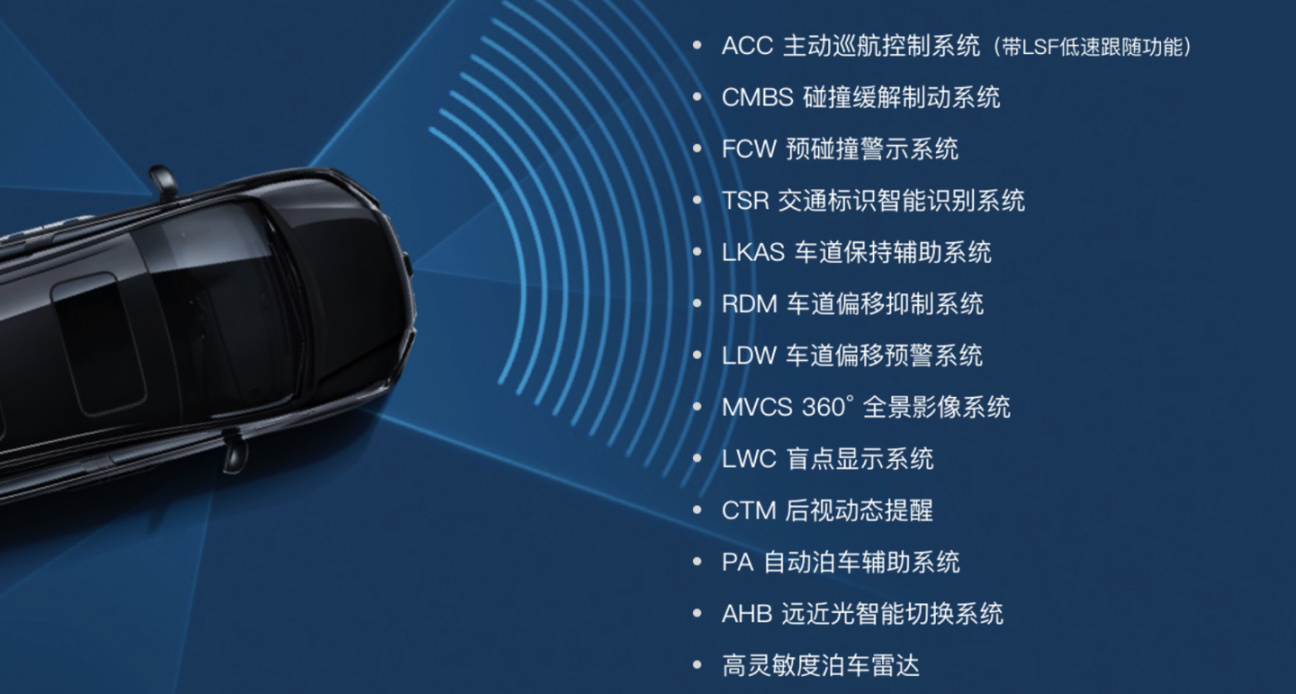 安全方面,該款汽車支持 ACC 主動巡航控制系統、CMBS 碰撞緩解制動系統、FCW 預碰撞警示系統等,支持 MVCS 360° 全景影像系統、自動泊車輔助系統。