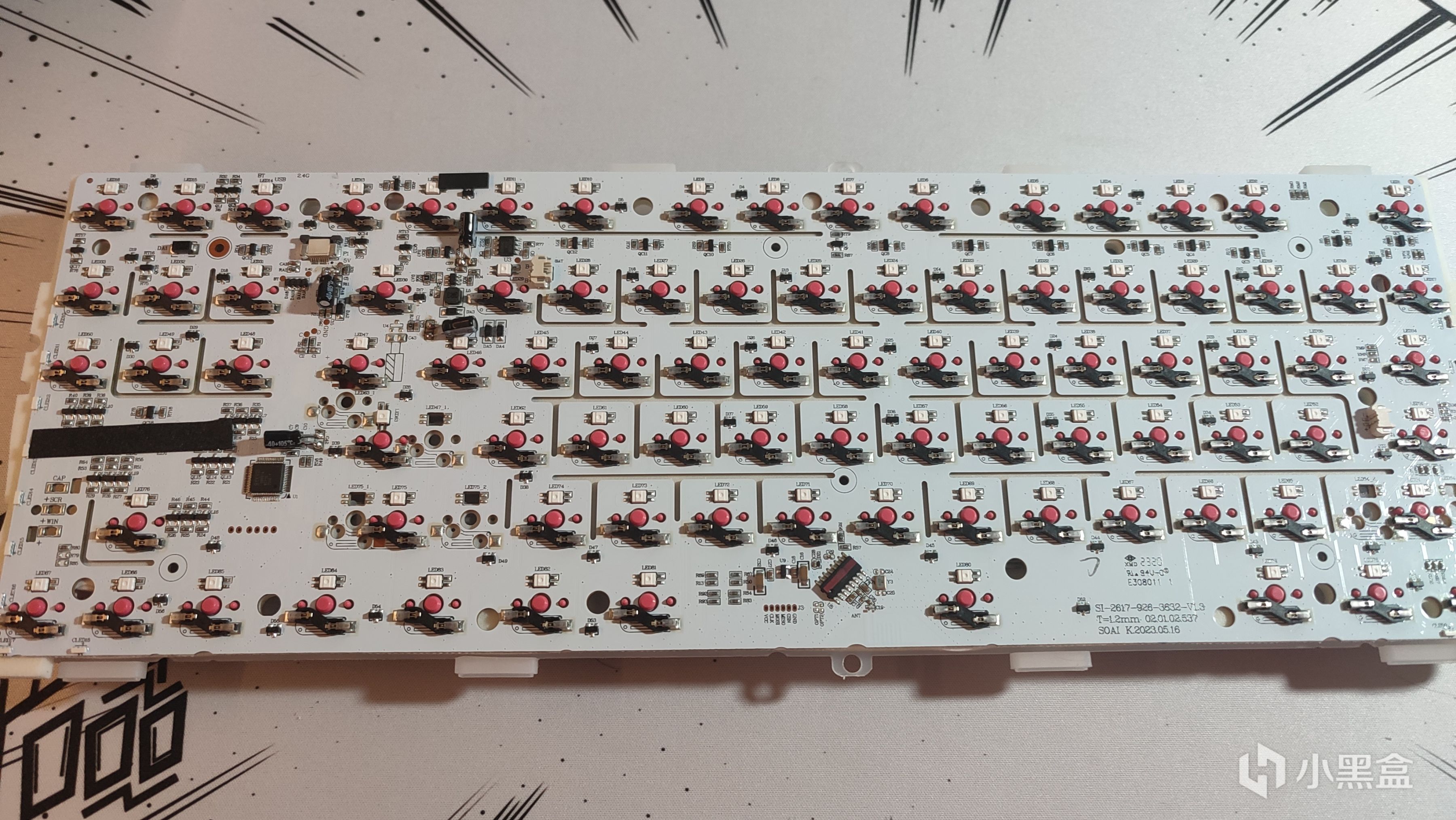 PCB和底棉的中间还增加了一张轴座棉,讲过好多次了就不细讲了,就是减少了PCB和底棉之前的空隙让空腔音更小。