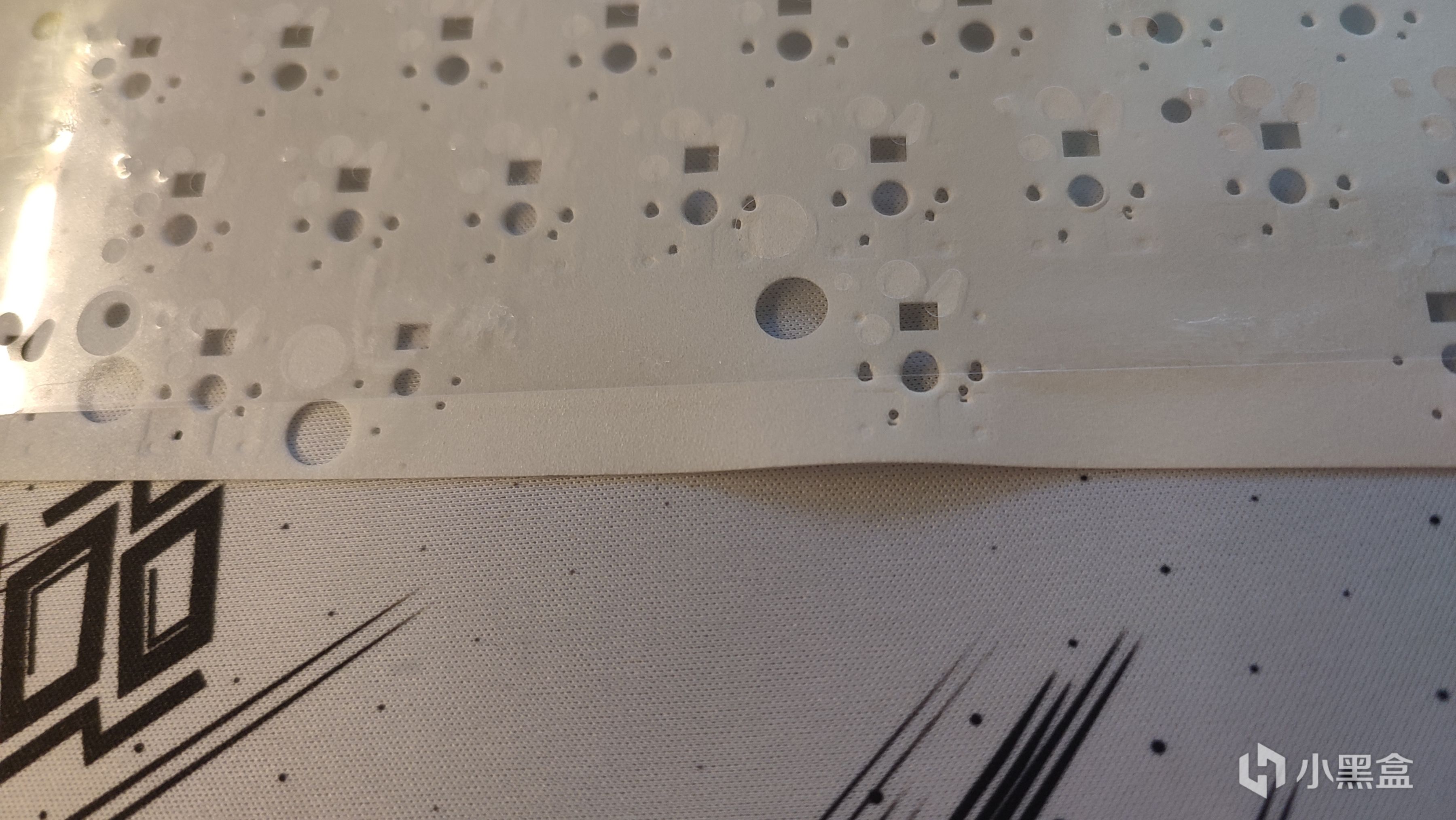 在轴下垫下方还增加了一个PET材质的声优垫,这个声优垫能让轴体敲击的手感更集中,反馈出来的声音对比没有的好了许多,所以现在稍微卷一点的键盘都想着塞一张声优垫进来,因为不影响轴灯所以开槽也比较少,从而对声音的提升还是比较大的。
