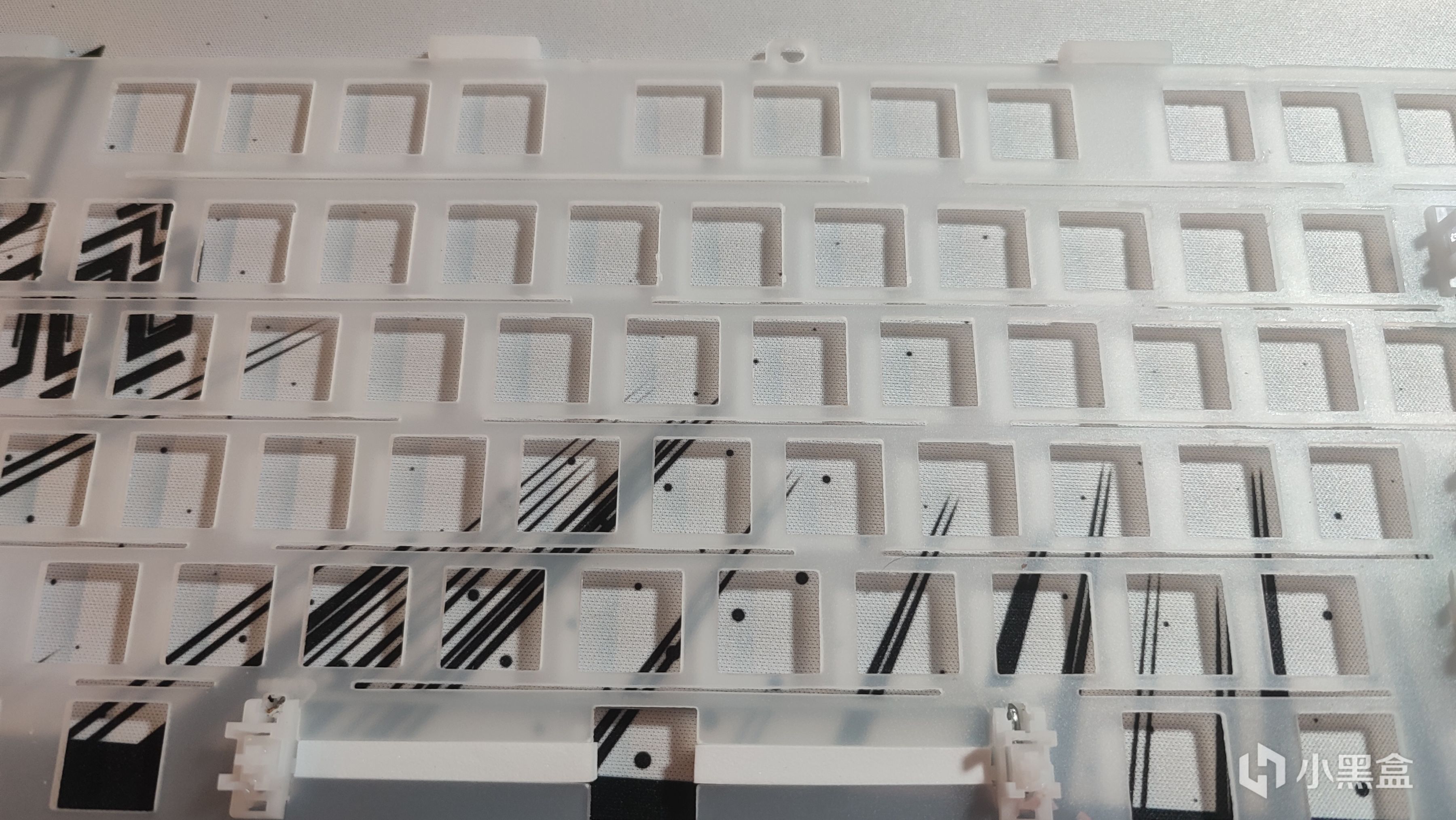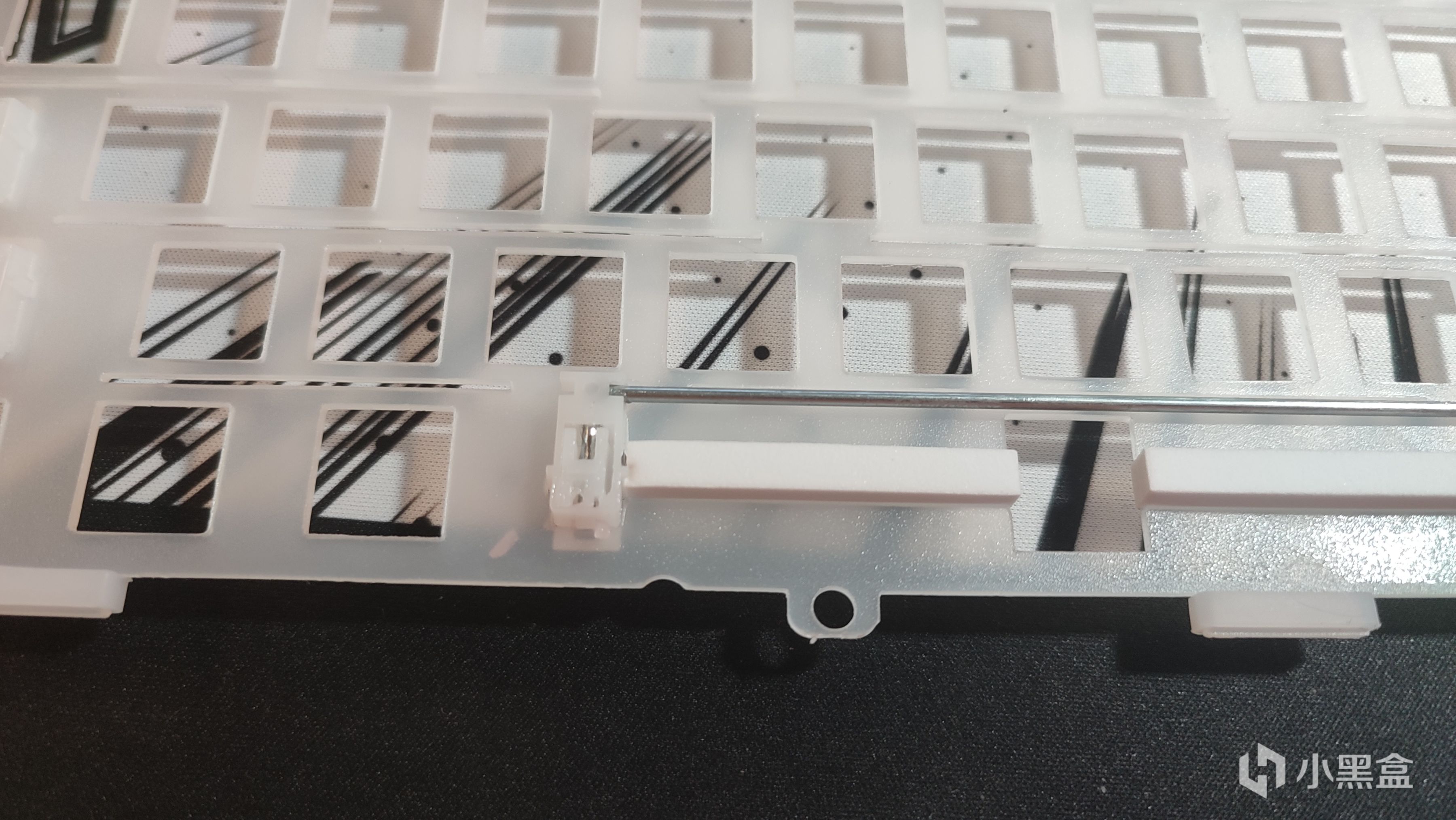 定位板采用了GAS结构最常见的PC材质,在透光的同时也保证了一定的软弹程度,同时采用了横向开槽在软弹程度上有所增加,但又不会过于软导致手感肉。
