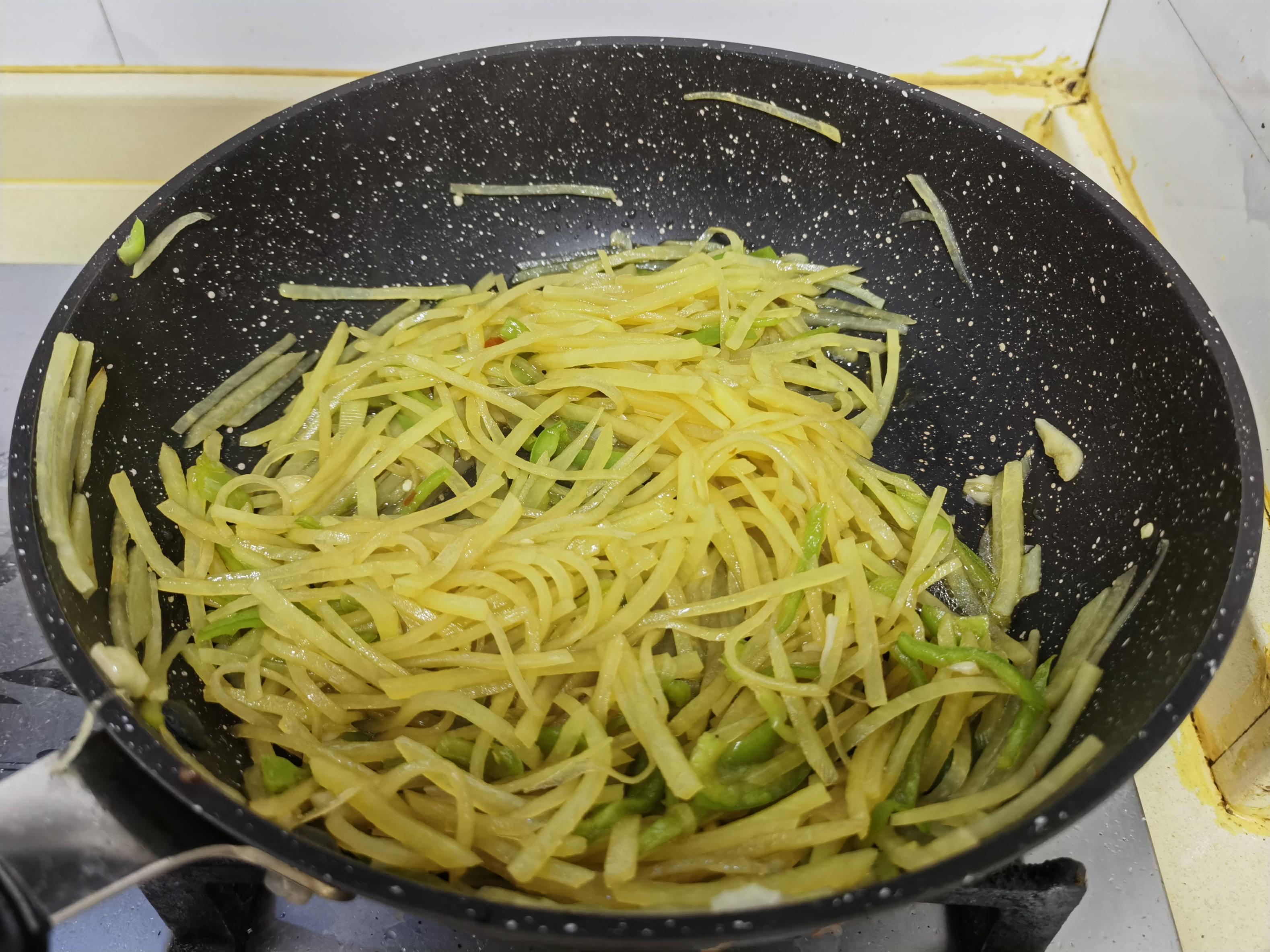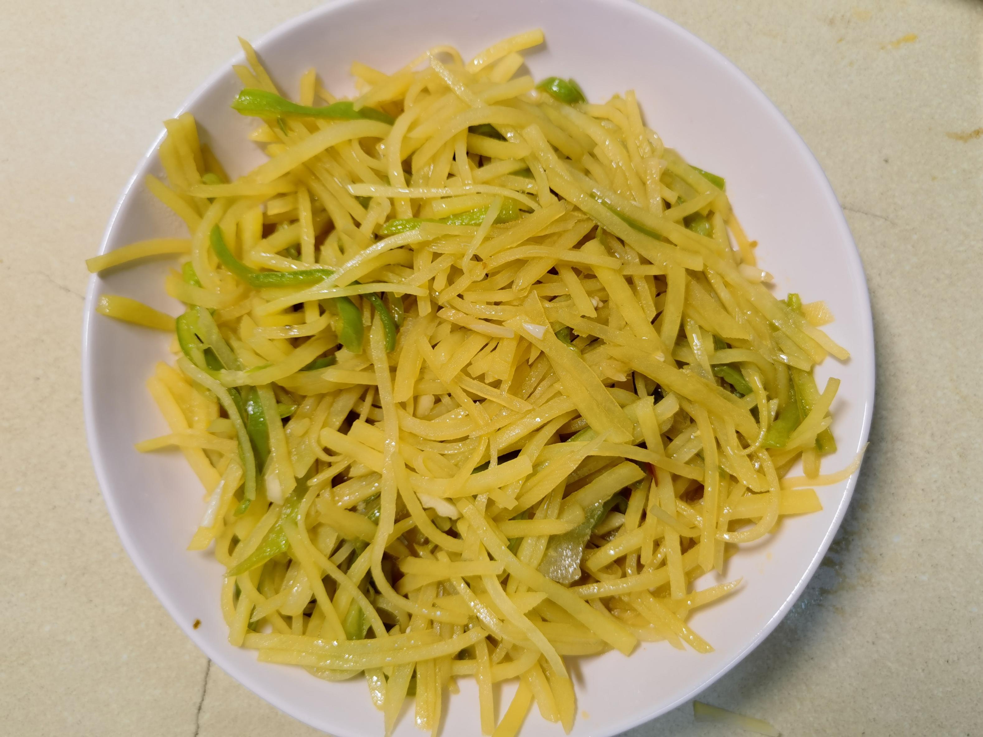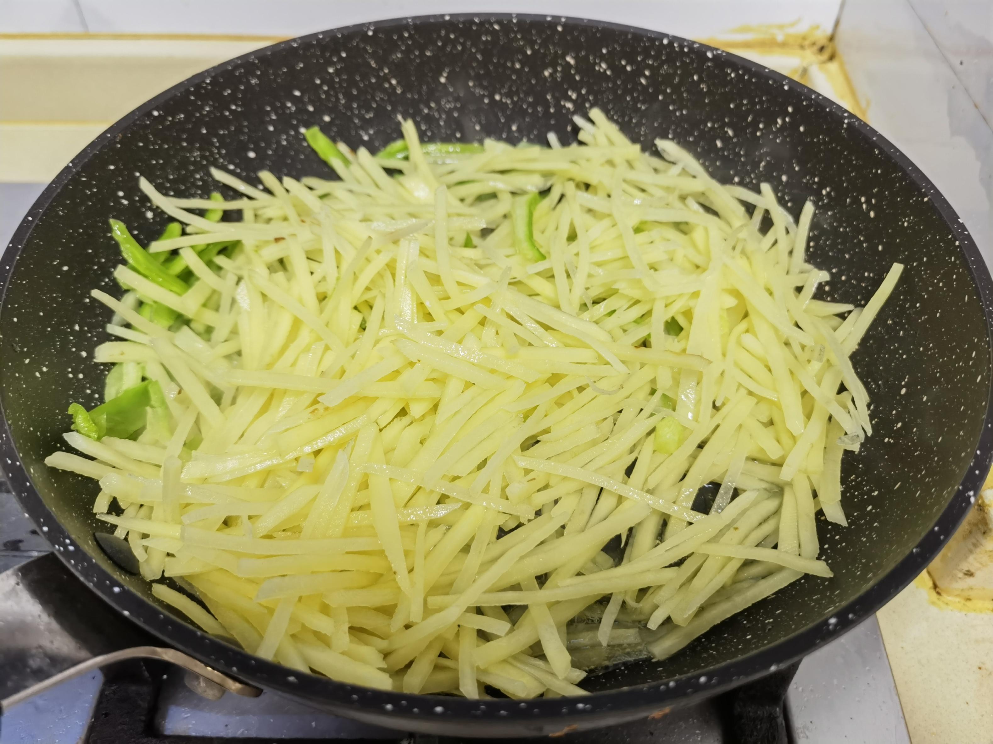 土豆絲想喫脆的就需要多洗兩遍,衝去澱粉。