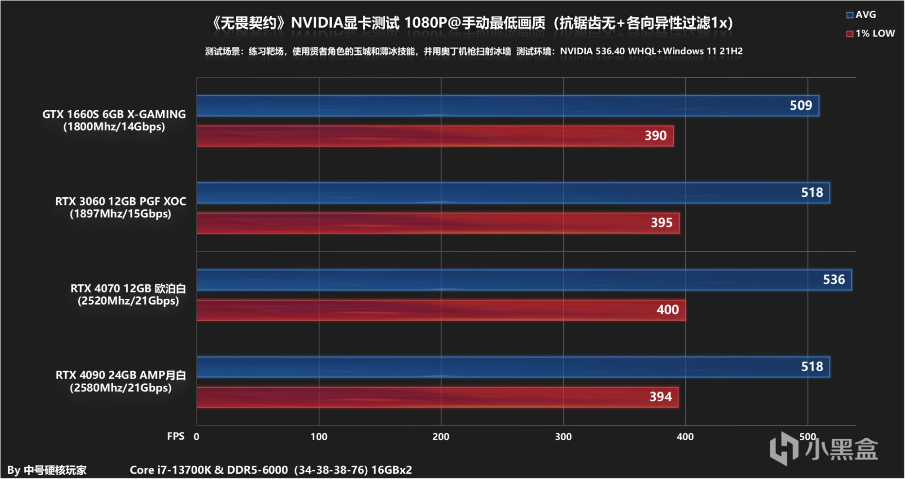 2K分辨率,最高畫質情況下唯一變化較大的是GTX 1660S,畢竟它本身定位就不是2K的,不過也能跑到平均293fps。而最低畫質基本和1080P幀率表現一致,渲染壓力也是很小的,可想而知《無畏契約》的顯卡門檻究竟有多低。