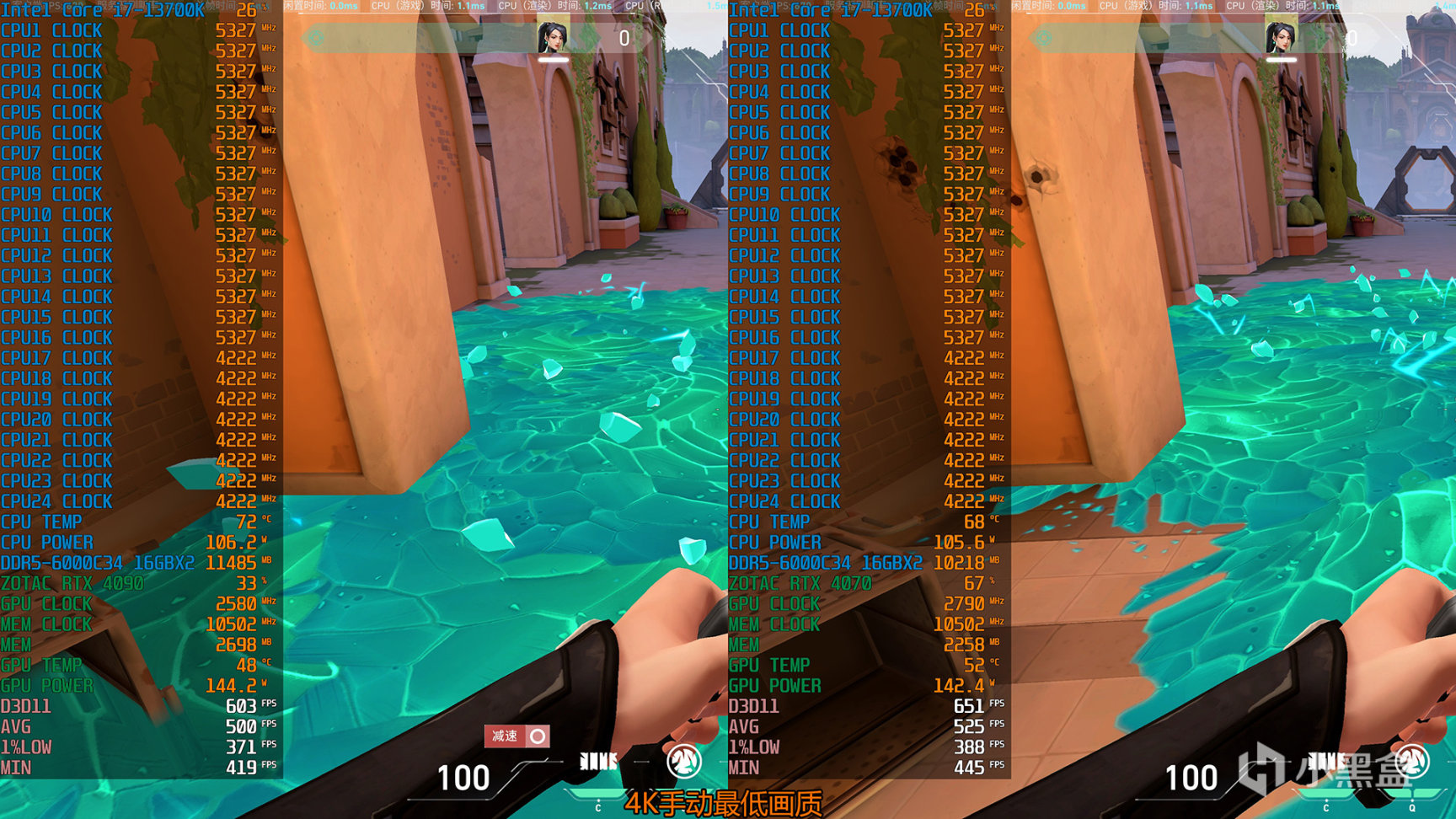 那麼RTX 4090跑起來有什麼意義呢?從以上OSD硬件監測可以發現,它在遊戲中的運行功耗和溫度相對來說較低,能給予玩家舒適的遊玩體驗,持有RTX 4090的玩家肯定也不是專門爲了玩《無畏契約》,不過論能效比來說,RTX 4090比RTX 4070在這款遊戲中還是差一些。至於CPU和內存方面的性能需求,等到官方replay功能上線再測試吧,結果會比現在的靶場場景更精準。
