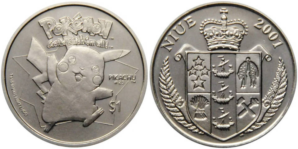 在位於新西蘭東部的紐埃,作爲一個獨立國家,他們不僅流通新西蘭貨幣,還有着自己本國的貨幣。而其中一款於2001年發行的紐埃特殊貨幣上,竟然印有皮卡丘的形象!這是對寶可夢的獨特致敬,也讓它成爲了紐埃島上的“法定貨幣”。
