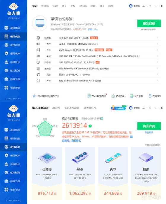 首先看看魯大師,具體的配置信息,給到的綜合性能得分爲 2613914。