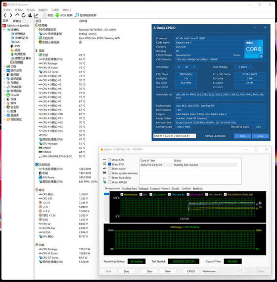 搭配 CPU i5 13600K,散熱表現相當的滿意,無超頻需求!選用主板,華碩 ROG STRIX B760I GAMING WIFI,B760I 給到規格用料基本也是夠用的,另華碩 B760 通過修改代碼,可支持帶 K 的 CPU 降壓降溫。