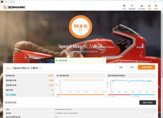 顯卡 SPEED WAY 壓力測試 99.8% 通過,FURMARK 滿載測試,GPU 頻率 1800MHz 左右 ,顯存 2500MHz 左右,過程 20 分鐘左右,核心溫度 73°C(結溫 88°C),顯示功耗 346W 左右。