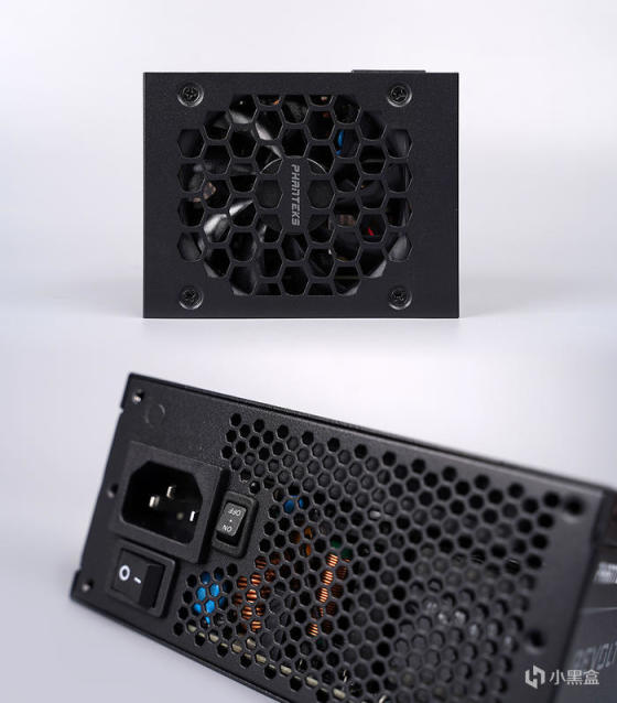 風扇格柵爲一體化頂蓋設計,內置的 92mm 流體動力軸承(FDB), 風扇具備智能溫控調節功能,對應電源尾部除了常見的 AC 開關外,還提供了一個智能 ECO 開關,玩家可自行選擇開啓,即 30% 負載下實現風扇停轉 0dBA 的使用體驗。