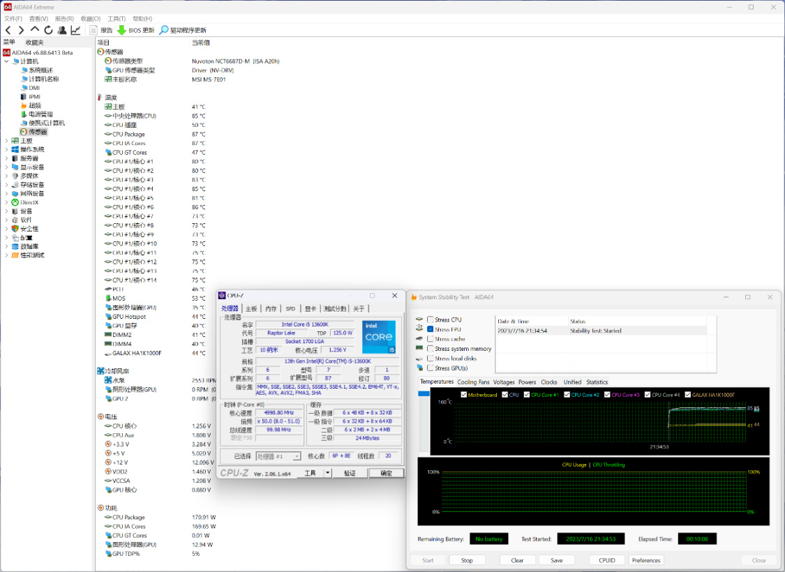 夏天来了,30多度基本是常态,机箱内环境,直接烤机,CPU功耗170W+,温度在87°左右。