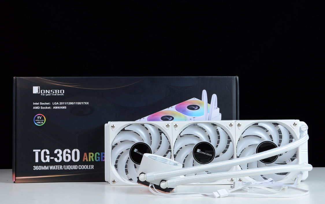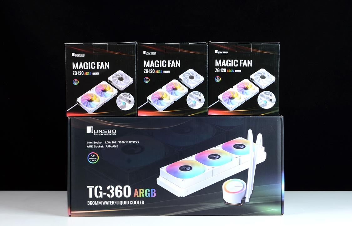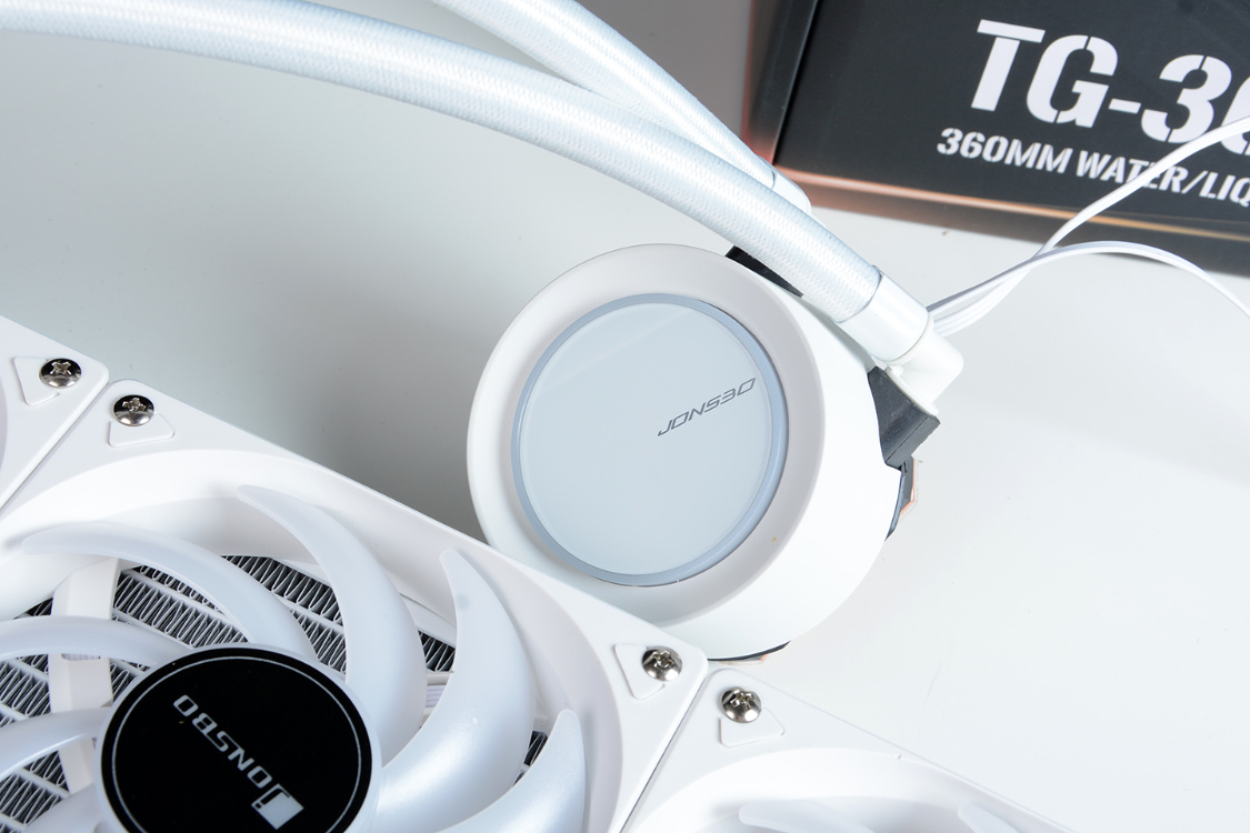 散热方面,选择的是乔思伯TG-360白色一体式水冷。简约的设计风格搭配纯白的配色,将颜值直接拉满。单线连接主板的简化线材设计,也能降低理线的难度。关键是,这水冷还贼便宜。咱还顺道买了乔思伯ZG-120W免线拼接风扇,正6反3,先拿出来秀一秀。