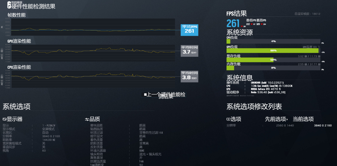 《彩虹六号·围攻》基准测试,画质超高,4K分辨率下,游戏平均帧率为261FPS,保持画质不变,2K分辨率下,游戏平均帧率为462FPS;