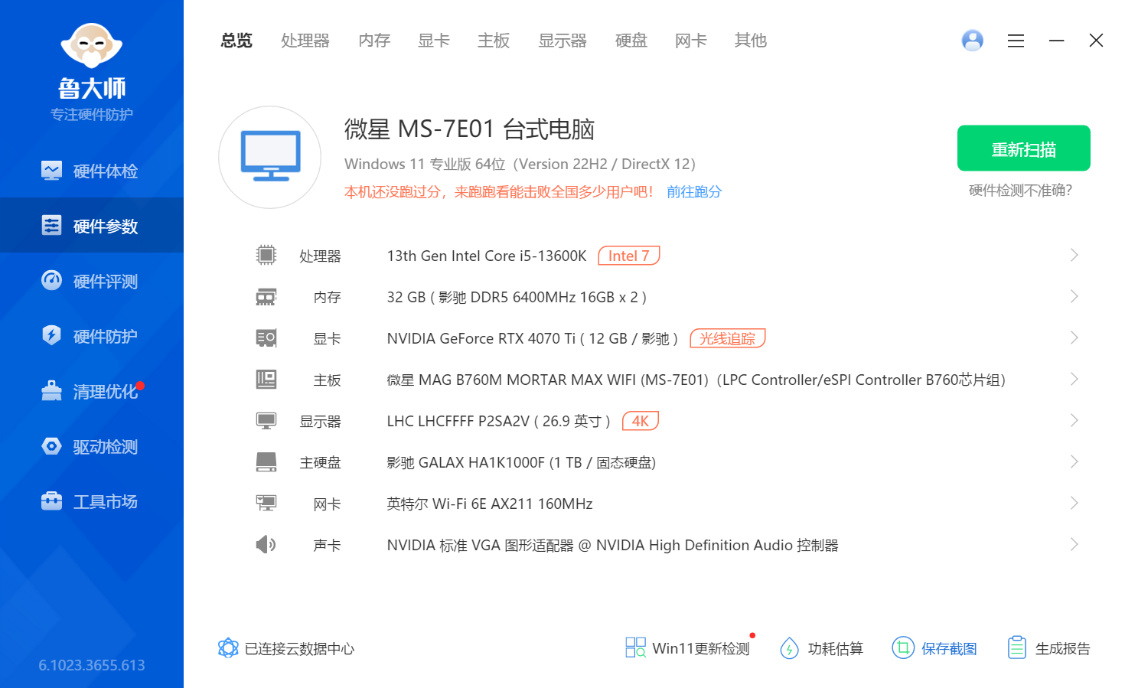 本次装机,虽然过程有些糟心,但好在结果并不差。带K的13代酷睿i5跟4070Ti显卡,在时下应该也称得上良配,搭配高频的DDR5内存,不论生产力还是游戏力表现都足够优秀。至于个别配件如电源的高配,这就看个人的实际选择了。如果你不想踩坑,而且具备动手能力,直接自己买配件自己装即可。整机颜值方面,快递造成的机箱小瑕疵显然并不能影响爱国者星璨岚的盛世美颜。