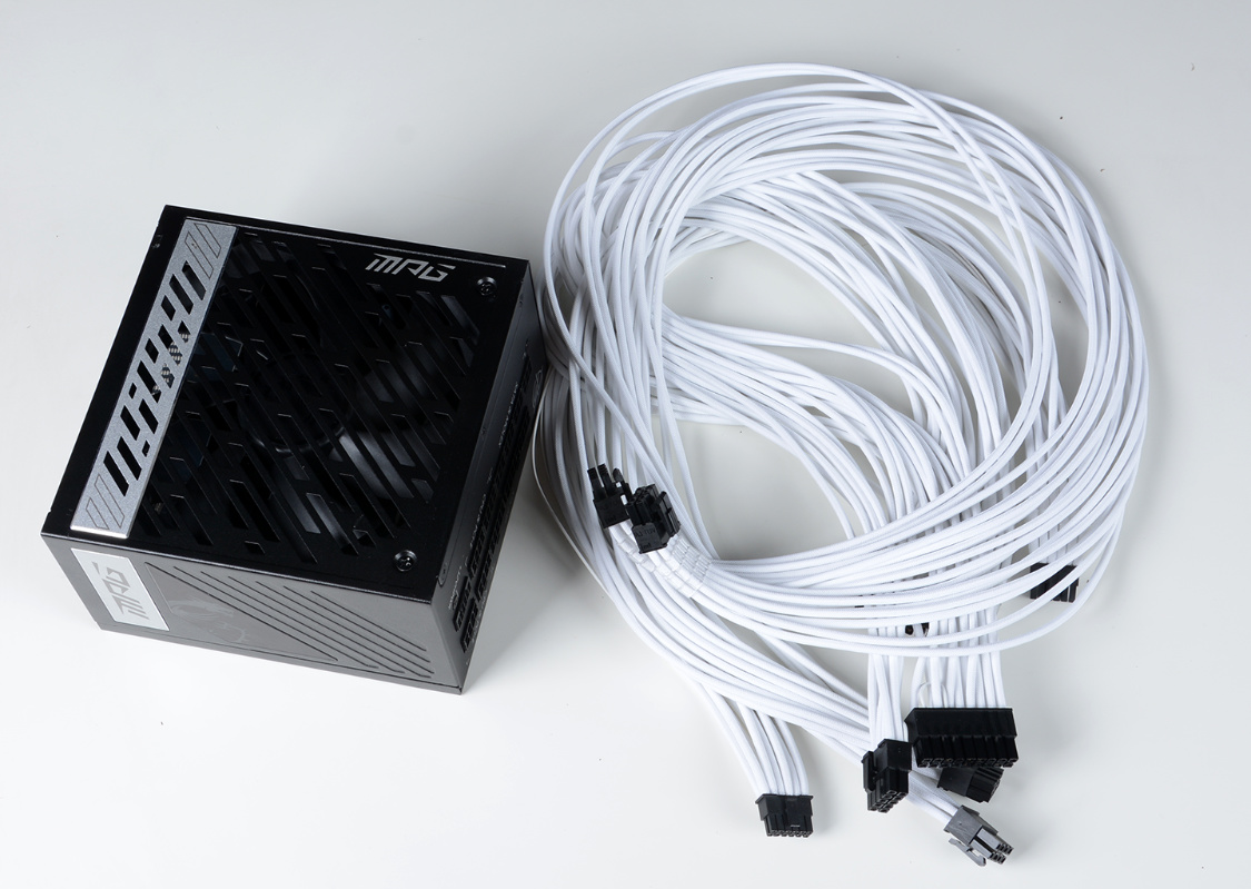 机箱空间要不是那么充沛,电源跟散热一般还是建议先装电源,或者先把主板端模组线安置好,也是极好的。今天装机电源,肯定算高配了,选择的是一颗微星的MPG A1000G PCIE 5 1000W金牌全模组电源。1000W的大容量,对于今天装机来讲,确实很富余,但是偶尔任性其实也没啥毛病,而且它确实可以战未来吖。