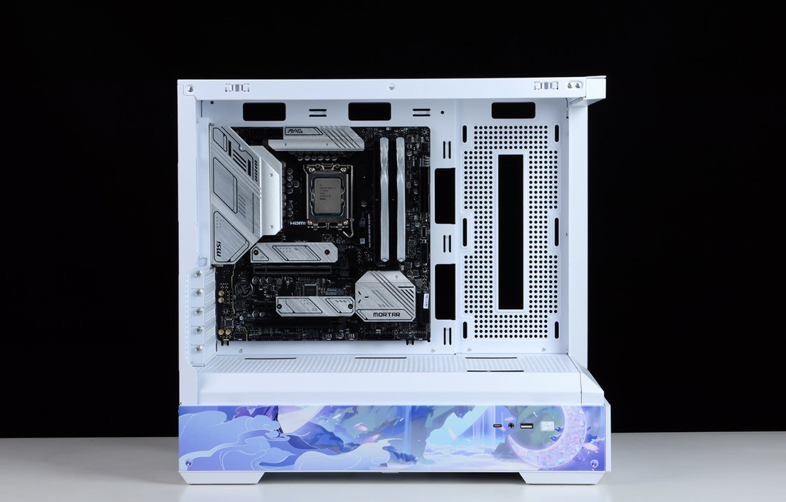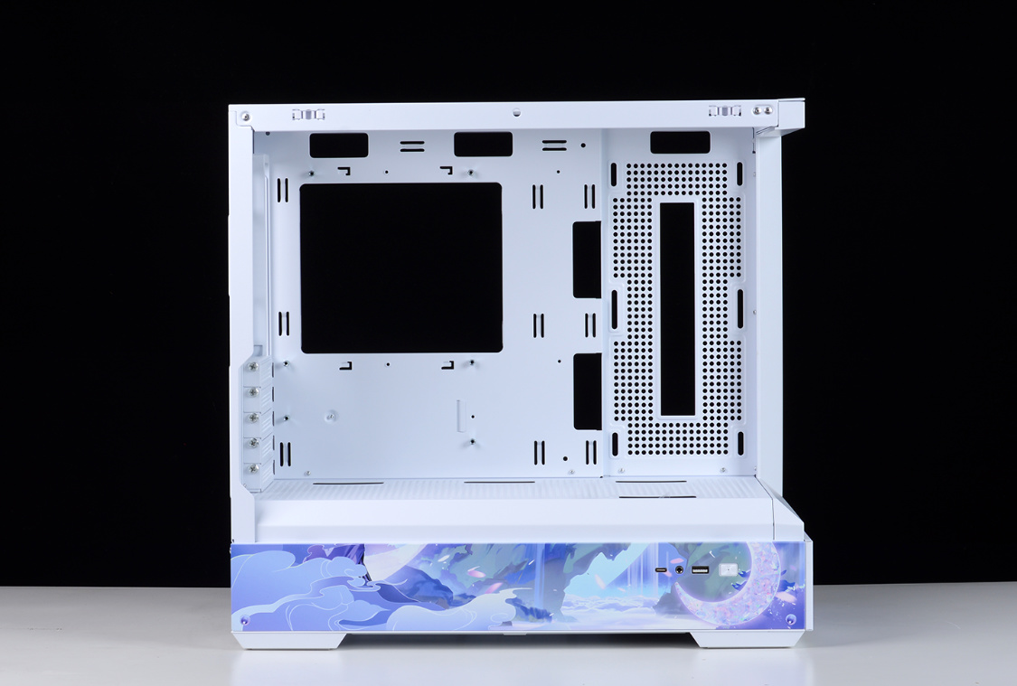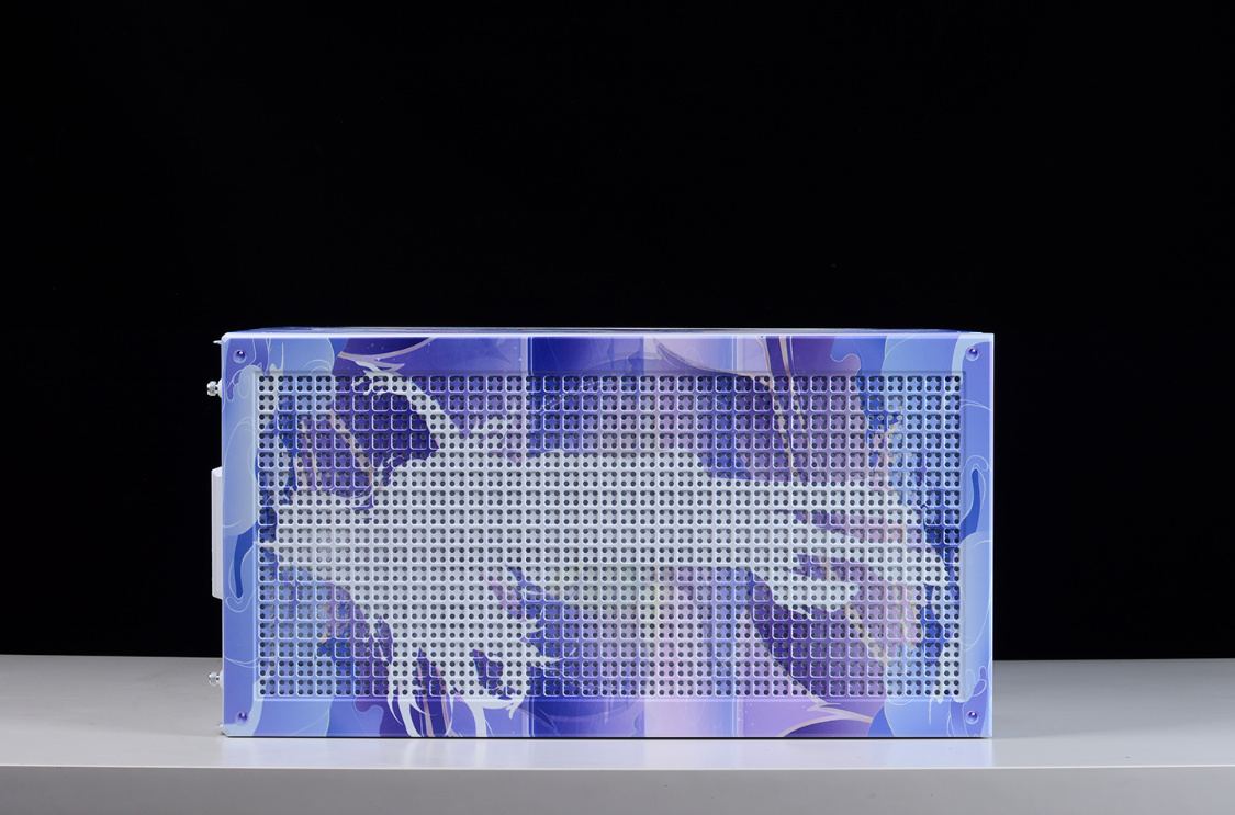 机箱右侧板为SPCC钢板,两侧均有大面积的散热开孔。这么大的面积,当然也得把我的女神喷上去。