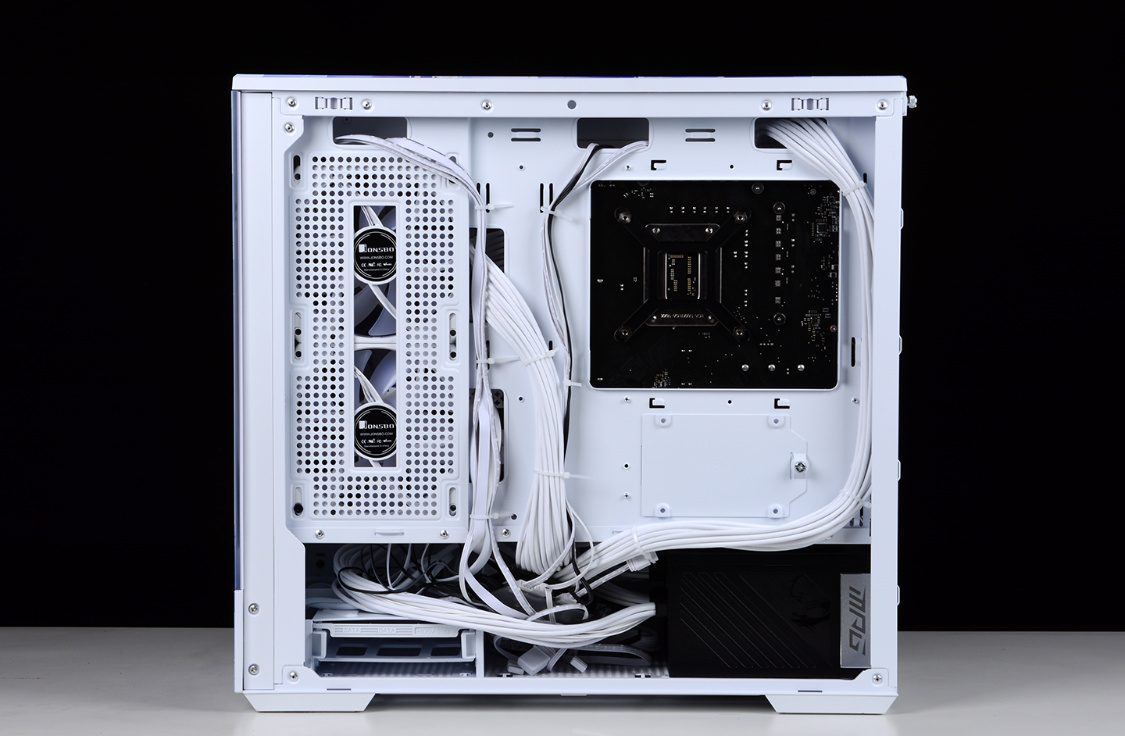 电源支持最新的ATX 3.0电源规范和PCIE 5协议,拥有80Plus金牌认证,并采用豪华的全日系105℃高性能电容,长时间高效稳定输出有保障。直出的12VHPWR模组接口,也能更好的搭配RTX40系显卡使用。黑色电源藏在后面没所谓,但是前端,白色定制模组线,咱也直接安排上。