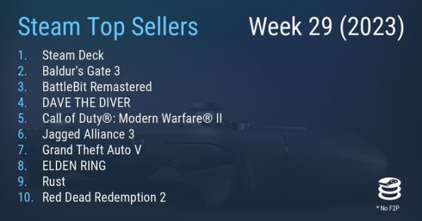 上週的Steam銷量排行榜已公佈,前十名如下: