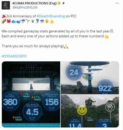 近日,在《死亡搁浅》发售三周年之际,小岛工作室公布了一系列游戏中的玩家数据: