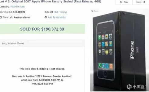 初代未開封iPhone4GB版拍出19w美元天價 因數量稀少