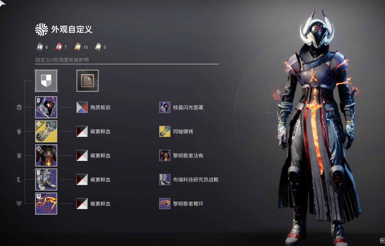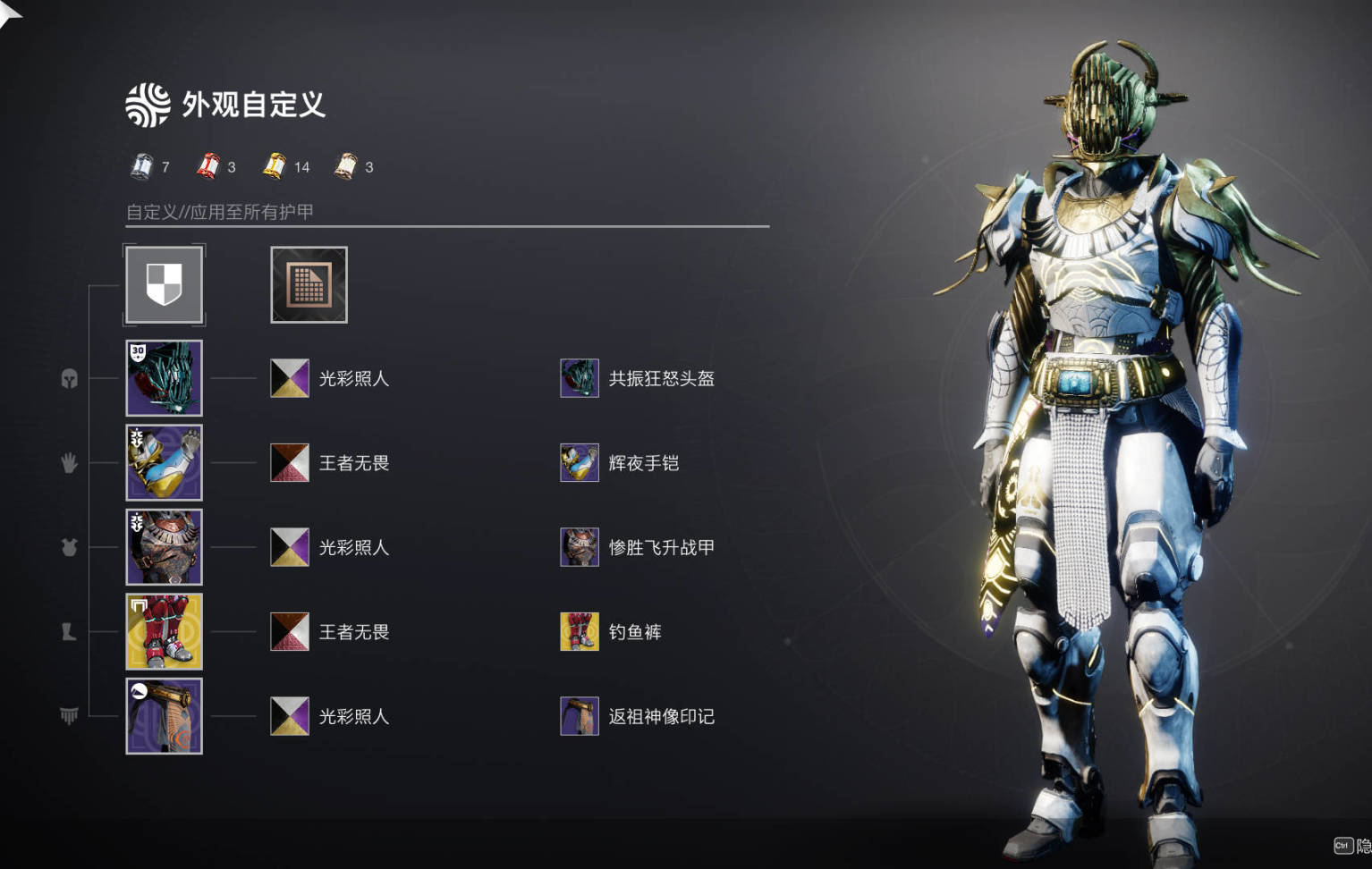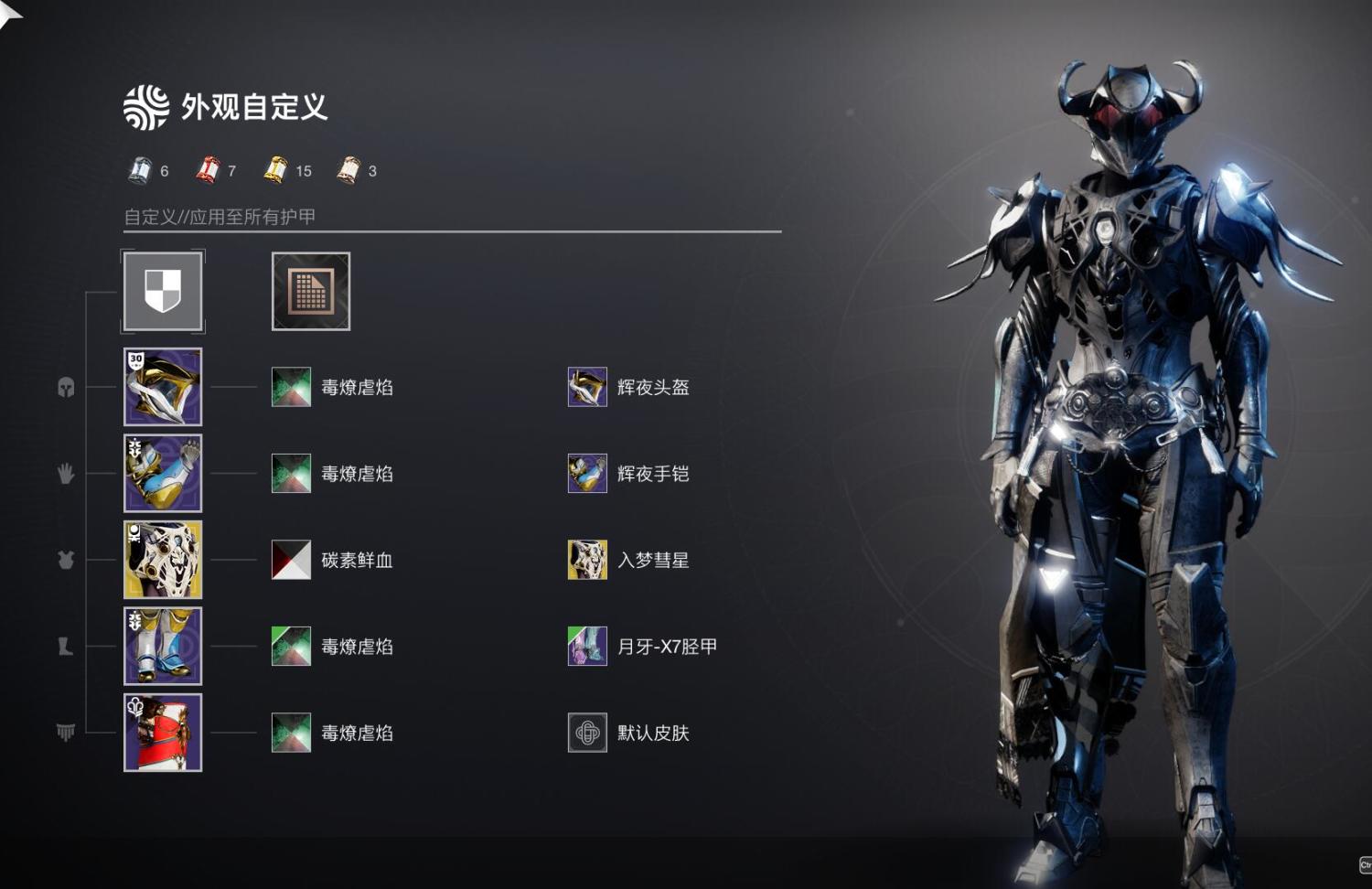 4.同樣是神隱賽季售賣的泰坦輝夜套也讓我開始重拾泰坦(不朽時我只玩泰坦),不得不說輝夜頭和輝夜肩甲真的太帥了,後續的穿搭思路也是主要以輝夜套爲主