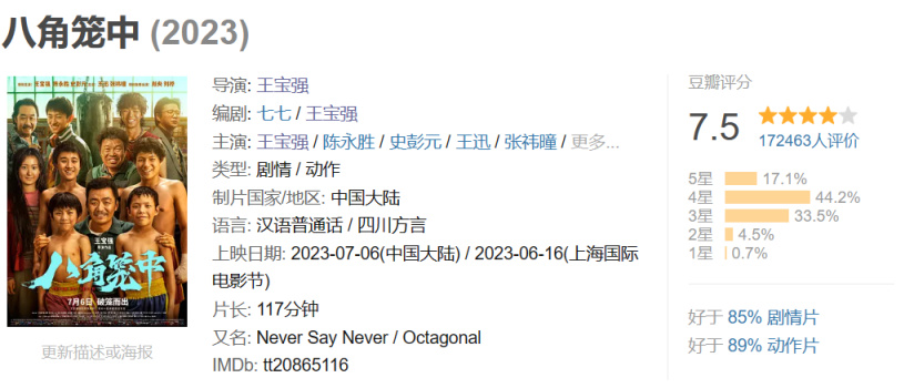 上映13天,《八角籠中》票房突破16億,豆瓣評分7.5分