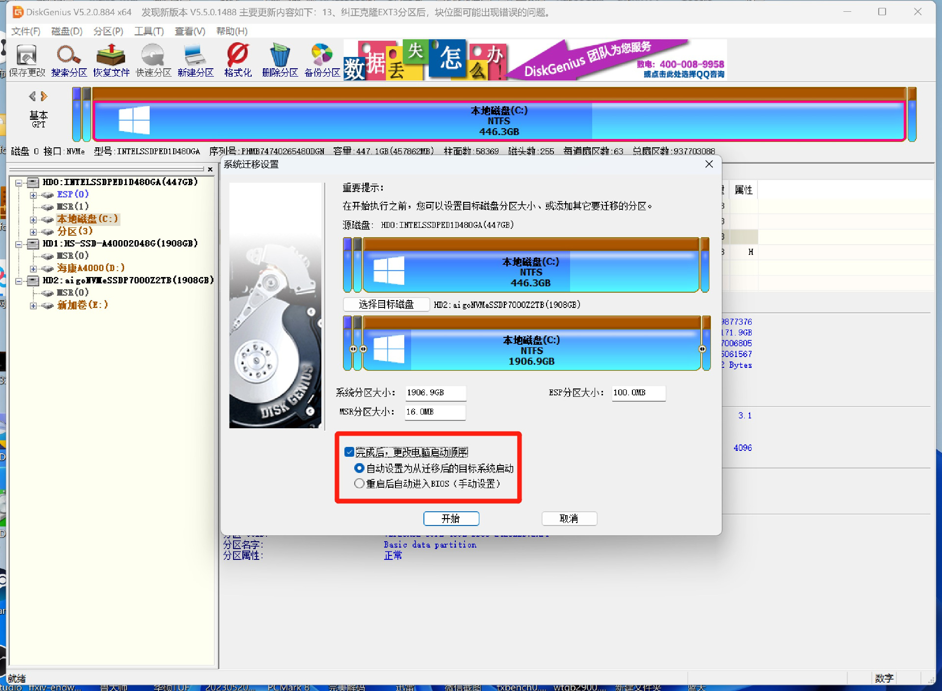 注意这里最好勾选“完成后,更改电脑启动顺序”,这样就不用我们手动去BIOS里设置启动首选硬盘了,非常方便。