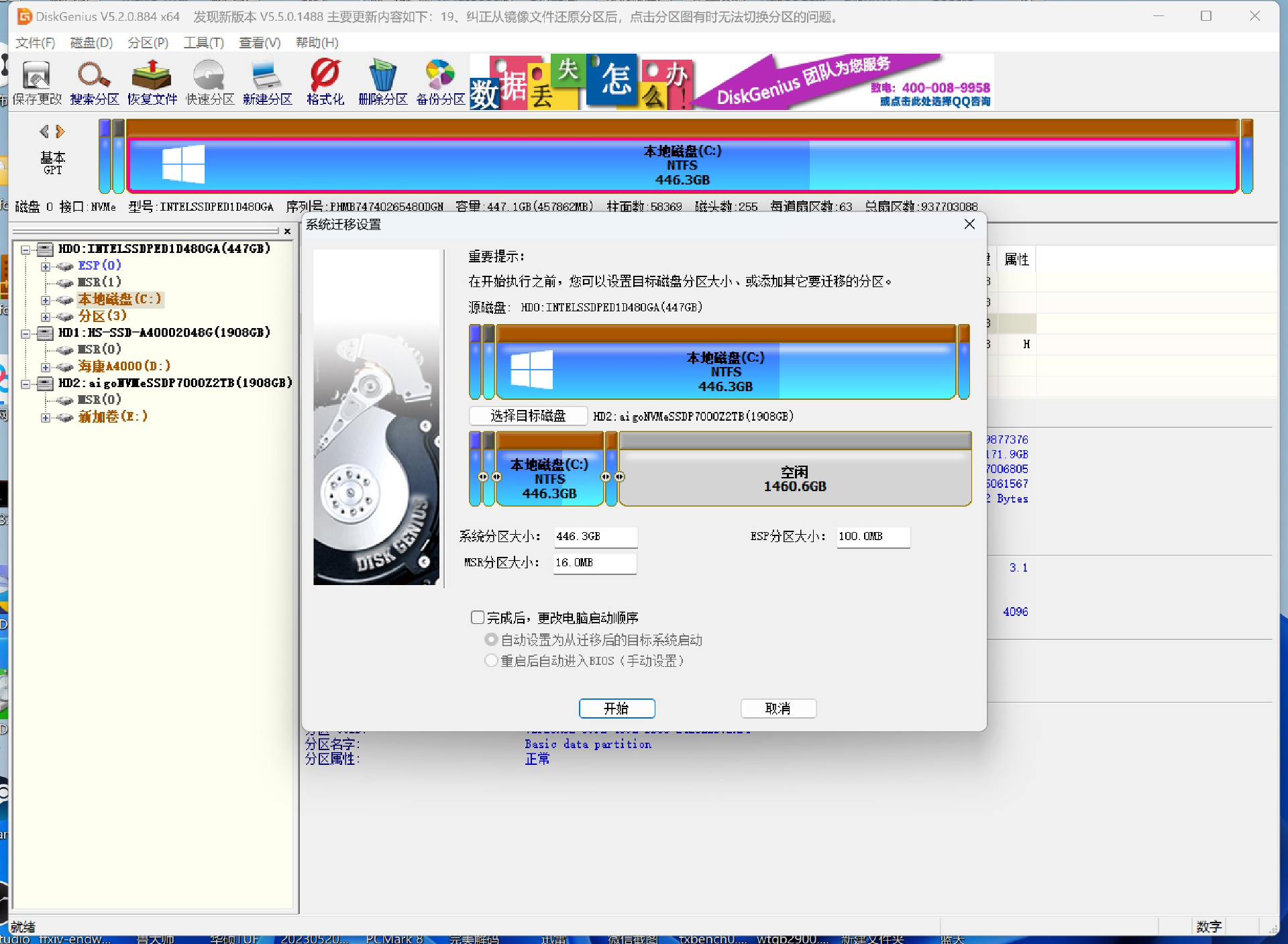 我个人比较推荐使用DiskGenius,主要它相对傲梅有一个好处,就是可以将原来更大的旧硬盘上的系统迁移到新的小硬盘上,对于我这种经常折腾SSD的老油条来说非常方便。所以这里就医DiskGenius中的操作来举例了,也是非常简单。
