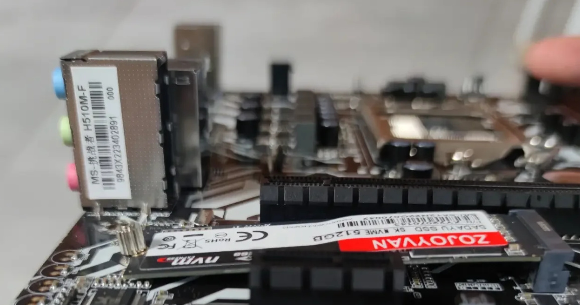 不过有的入门主板或者二手主板可能没有固定螺柱和螺丝,我们可以去某宝买一个来垫高。万万不可以像下图中一样大力出奇迹,只要记住正常安装M.2 SSD,只有水平状态才是正常的就好。