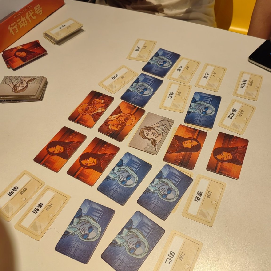 - 游戏介绍:《行动代号》是一款比拼团队默契、考验语言表达的聚会桌游。游戏开始前,会将参与玩家分成人数和水平大体相当的两支队伍,并各自推选出一名队长。同时,桌面上会展示 25 张仅含一个词汇但内容各不相同的卡牌。各队的队长扮演着间谍头目的角色,通过提供一条仅含一个词语的线索试图让己方的队员猜出桌面上属于己方的卡牌。