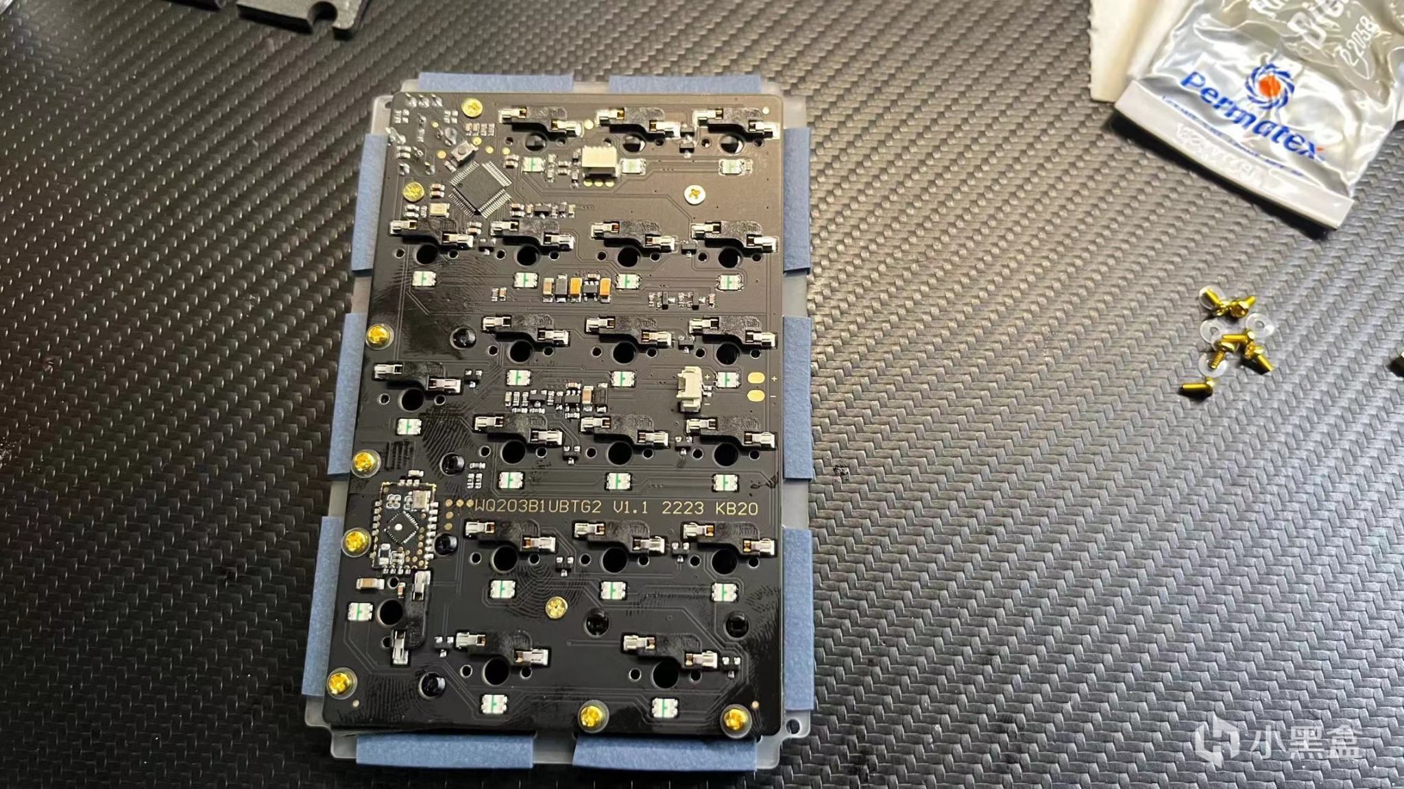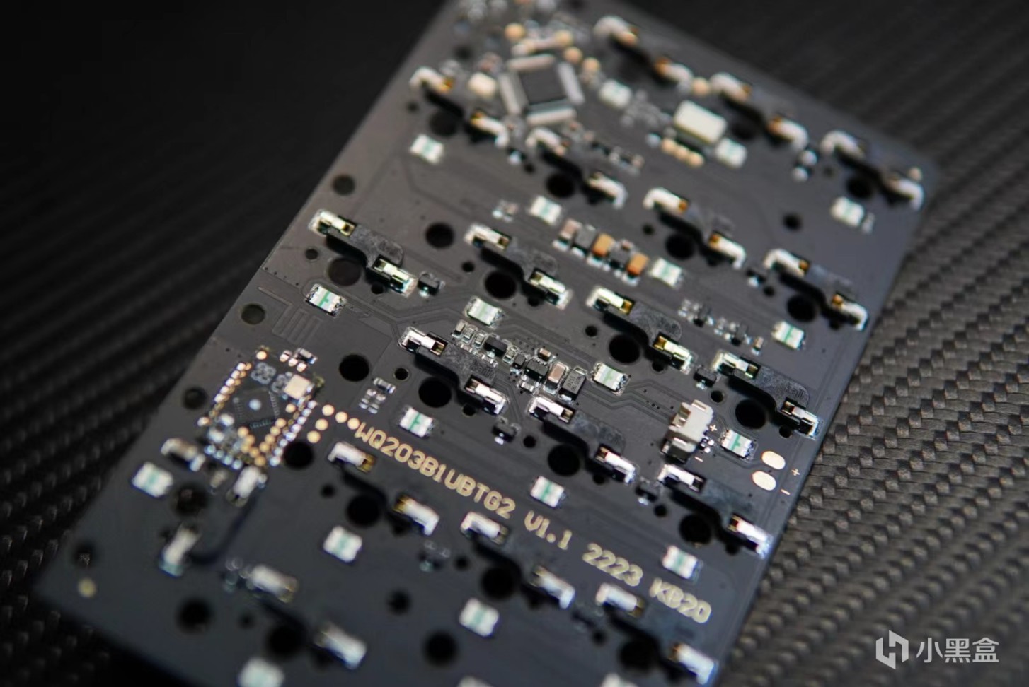 pcb方面採用的是一個下燈位的設計,鍵帽兼容性更好了一點點,右上角做了一個旋鈕的設計,並且這個旋鈕你可以選擇導光或者不導光的。