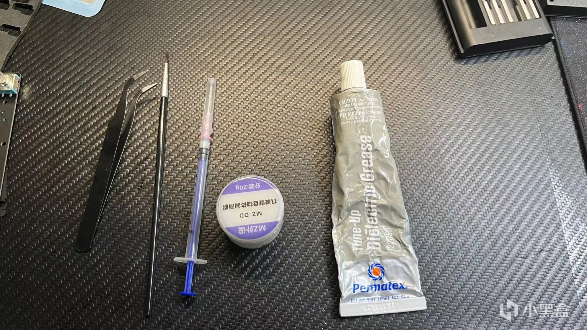 拿出調衛星軸的工具:鑷子,潤軸筆,潤滑油,泰楊22058