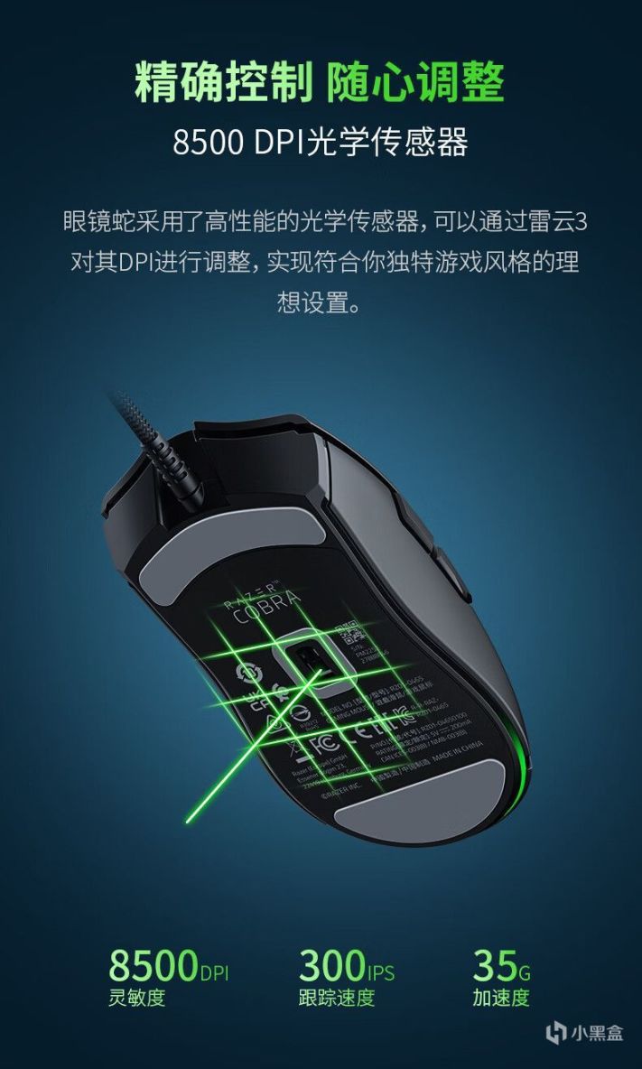 “Razer Cobra雷蛇眼镜蛇”是一款具有”Razer Chroma“雷蛇幻彩RGB效果的轻量化有线游戏鼠标,该鼠标配备了耐用的微动开关和渐变式 Chroma 幻彩底光效果,同时非常小巧,为您提供令人惊喜的强大游戏性能。这款鼠标具有多重优点,包括约 9 千万次的点击寿命、零双击问题、0.2 毫秒的极快触发速度、无回弹延迟等,可提供出色的可靠性和速度。