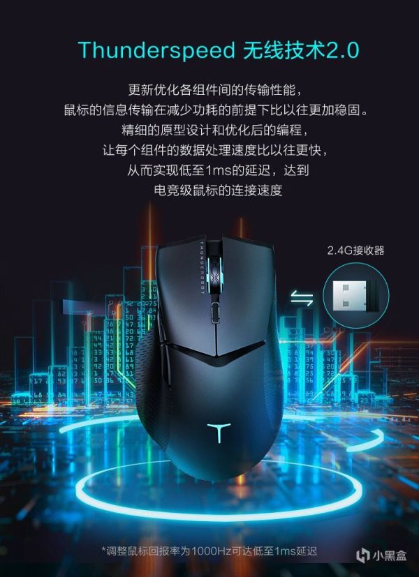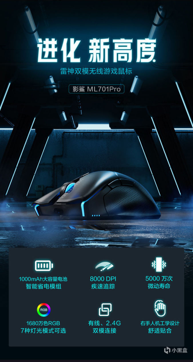 “雷神ML701”展现了从手稿到工业成品的华丽蜕变,完美诠释了什么叫业界典范与高规制造。赛博朋克风格的跑车造型给”雷神ML701“带来了更加带感的外观。金属灰黑的机身与LED背光相结合,创造出浓厚的科幻氛围。这种设计突出了硬朗的线条和倒角,与笔记本电脑的主要和次要元素明确分离的设计思路非常相似。它采用了机身对称的6键结构设计,尺寸中等,更适合男性玩家使用。这种硬朗的画风和设计理念确实给人一种强烈的男性化感觉。鼠标的重量只有96克,对于一款内置了600mAh锂电池的无线鼠标来说非常轻巧。这种轻量化设计在携带和操作时更加方便,使玩家能够更加精确地控制鼠标移动。