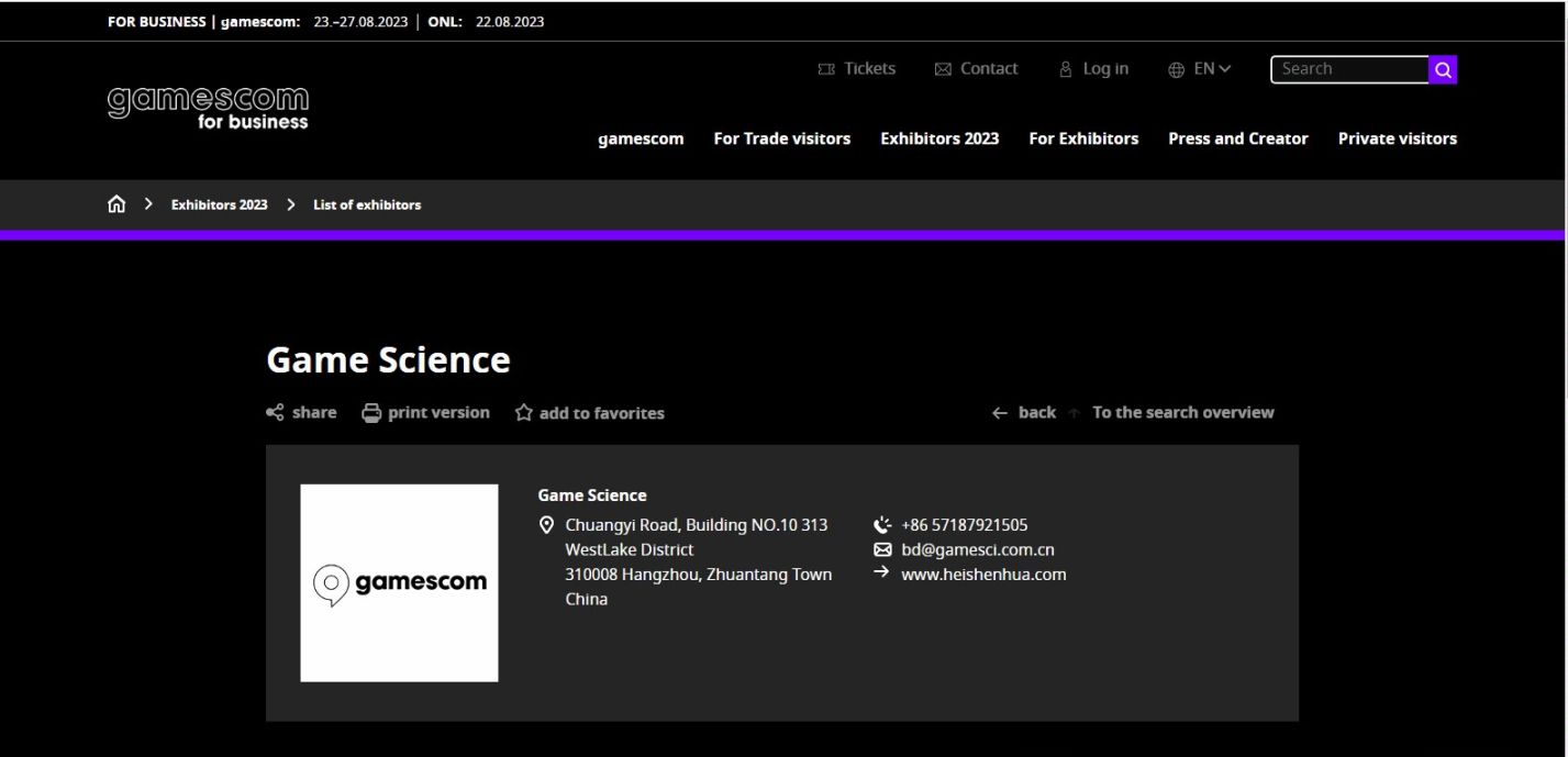科隆官网页面显示,《黑神话:悟空》的制作组游戏科学将参加今年的科隆游戏展,这意味着《黑神话:悟空》新情报、新实机即将与玩家见面!