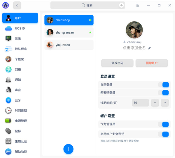通過控制中心-帳戶,開啓無密碼登錄後,在開機或鎖屏狀態下進入系統時都無需輸入密碼。